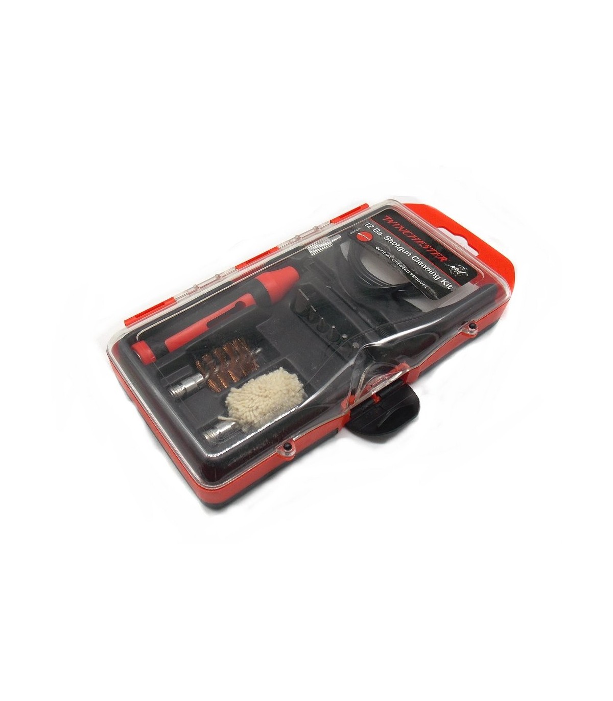 Kit pulizia professionale per fucili calibro 12, formato da 13 pezzi con passo americano in blister trasparente.Il kit comprende: manico con bacchetta, due scovoli, trascinastracci, pezzuole, spazzolini , uncino per pulizia e tutto il necessario per una pulizia completa