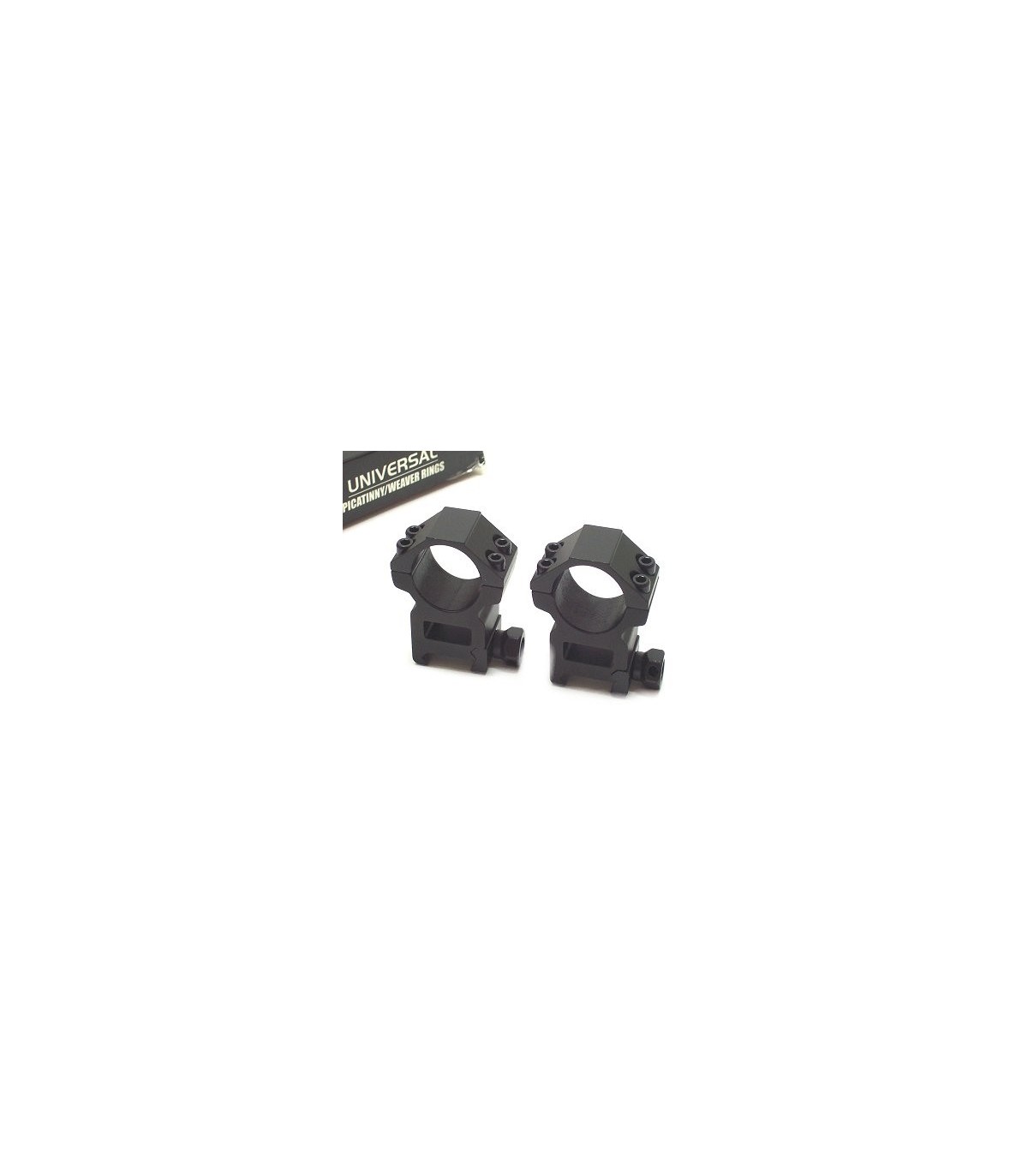 UTG weaver rail 25 mm scope tube rings match mount (2 pieces) - high, made of aluminium, with four screws for each ring