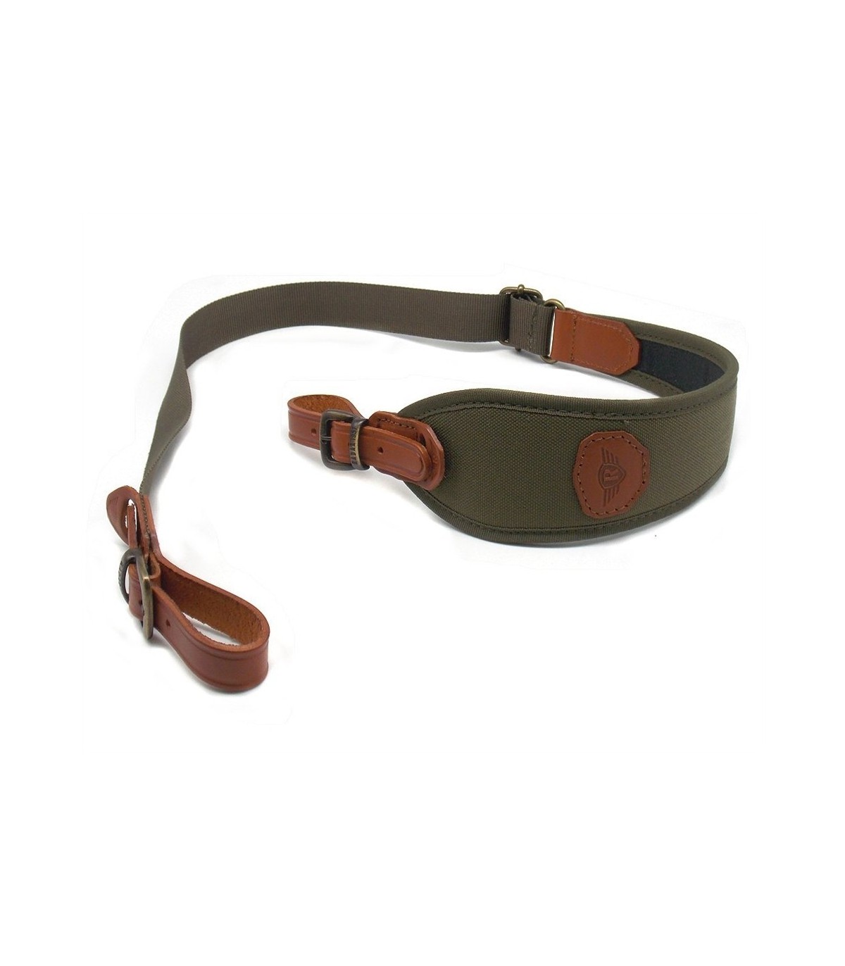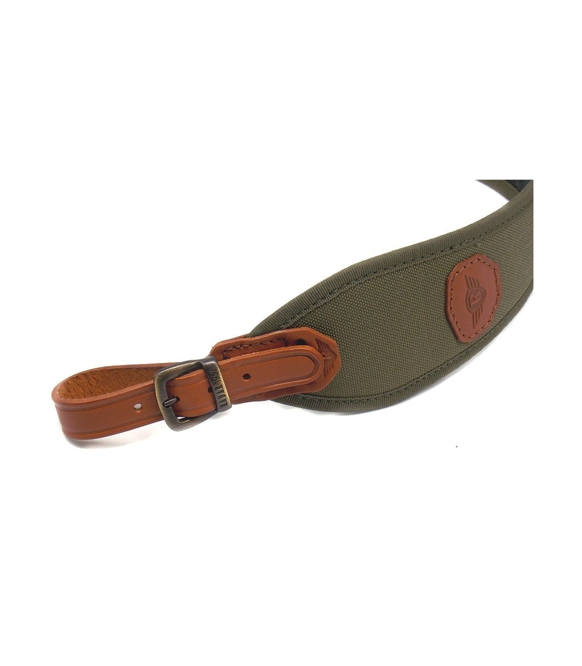 Bretella porta carabina in cordura verde e cuoio grasso con fibbie in ottone