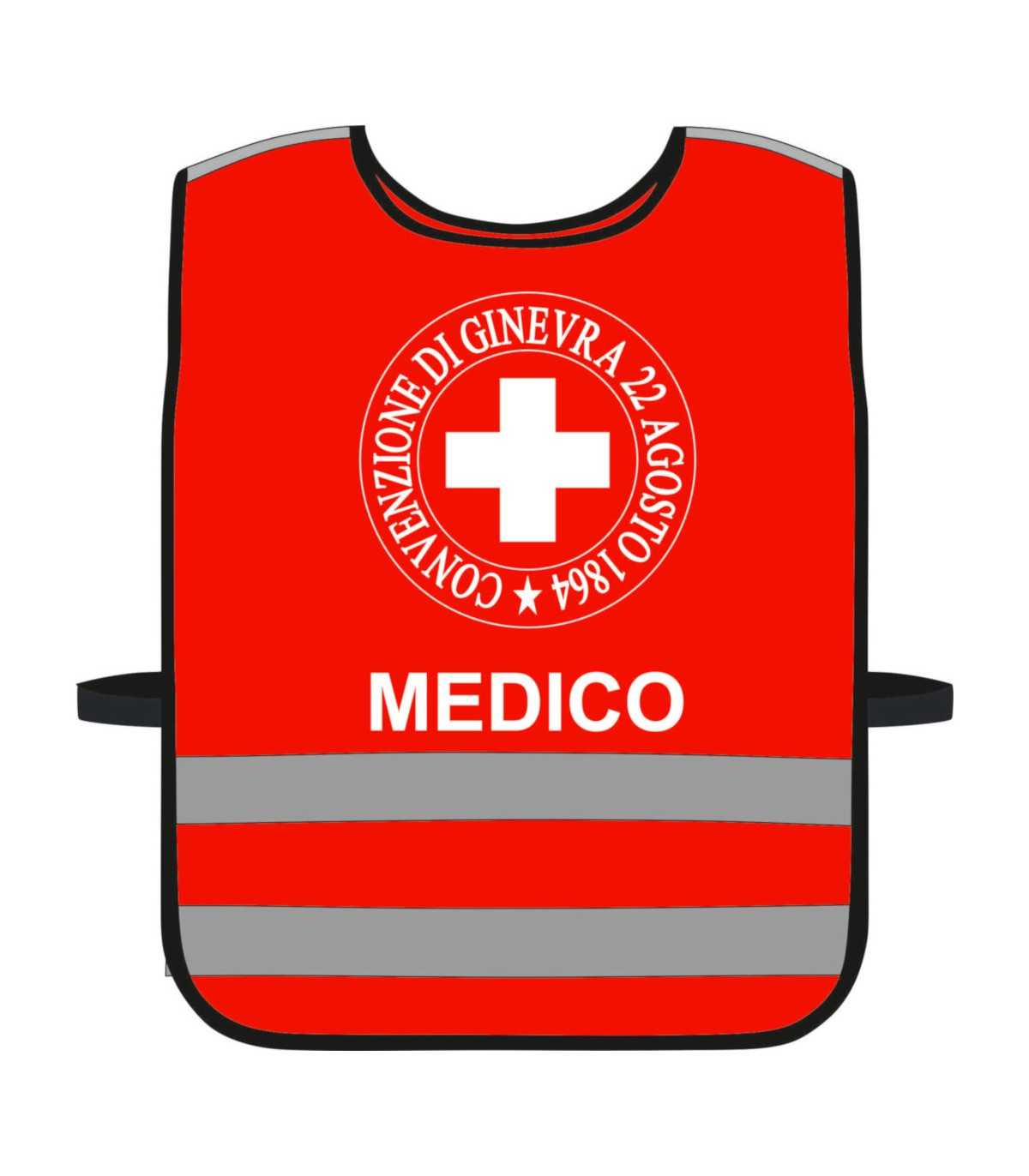 The example print in the photos (ITALIAN RED CROSS DOCTOR) on the bib can be customized to your liking. On a maximum of two staves. Font / Character used ARIAL or SANS-SERIF