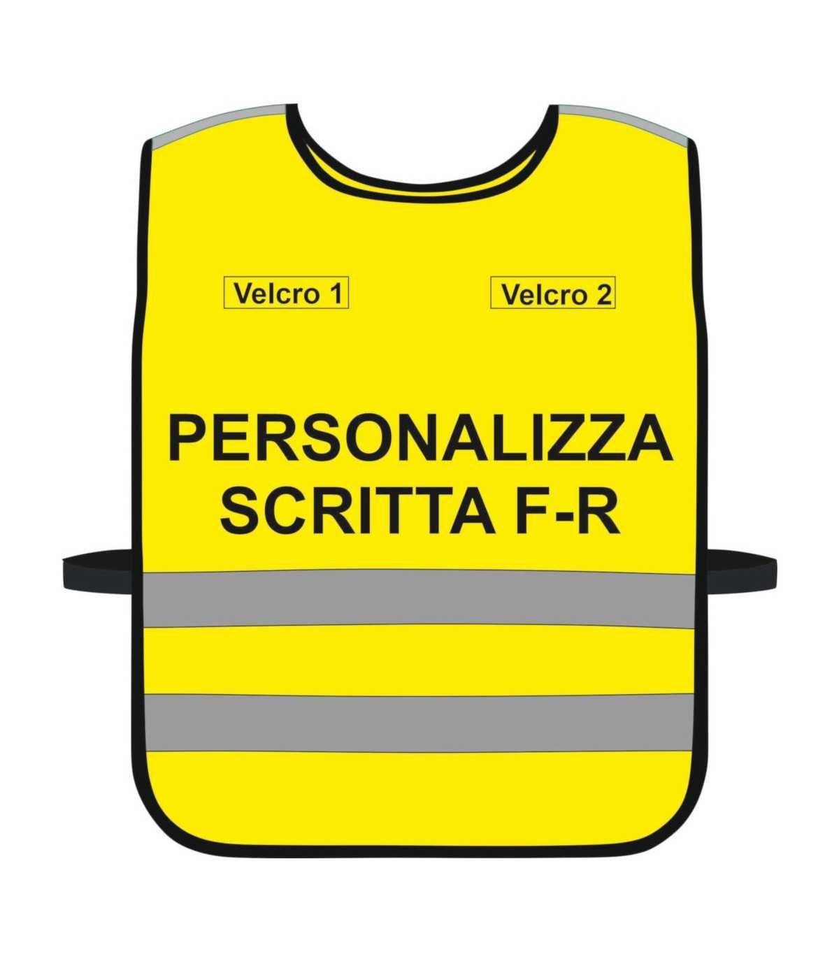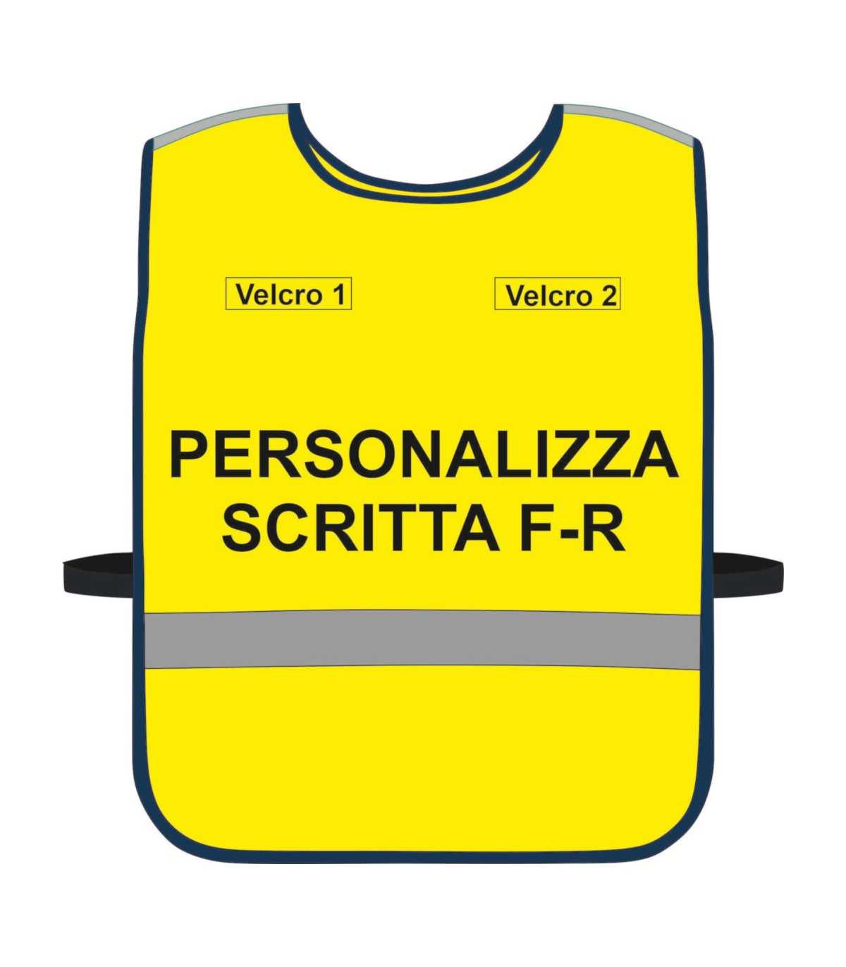 Product made in Italy that can be customized on all fronts: from the background color, to the side edges, to the reflective bands, to the print, to the color of the print, to the velcro strips to be applied (shape and size).