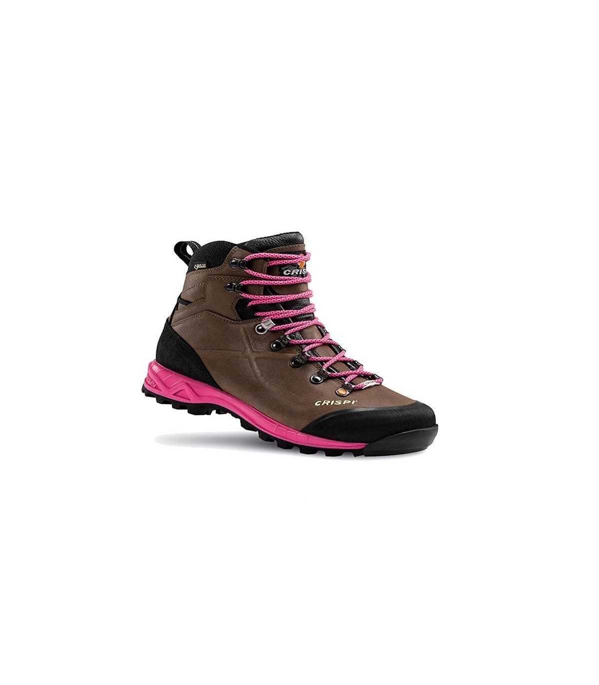 Women's boots with upper in brown water-repellent greased Nabuk and magenta inserts>br>With Gore-Tex lining>br>Ideal for long periods of use, thanks to the anatomical shape and in particular to its lightness>br>Recommended for hunting on hilly and flat terrain, for dog training and hunting canine>br>The particular technology used allows greater protection and support to the foot, allows to obtain a natural and total wrapping of the foot, as well as a more firm and consequently stable heel>br>The Gore-Tex lining allows for maximum waterproofing and breathability>br>Toe cap and rear protective rubber insert>br>Vibram sole with shock-absorbing midsole, integrated with the CRISPI CCF cushioning system for excellent stability, maximum support on uneven ground, also limiting foot fatigue when walking>br>Removable insole: CRISPI Air Mesh Evo + Felt + Activated Carbon>br>Available sizes: 38, 40, 42>br>Made in Italy.