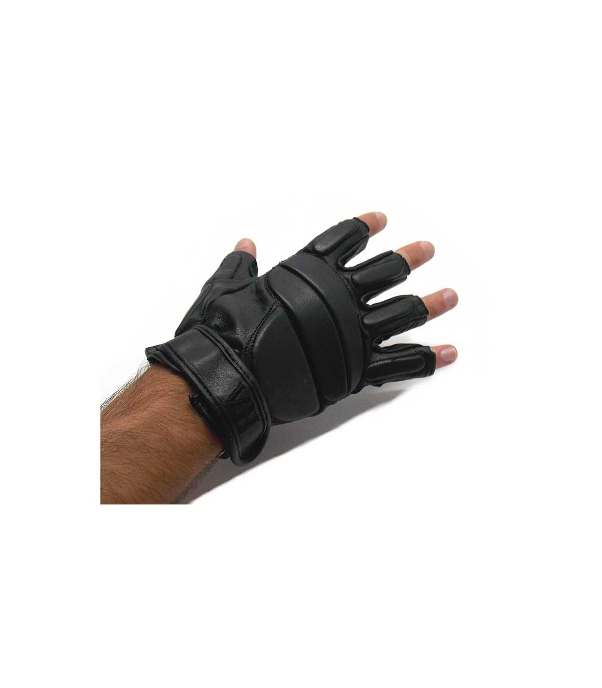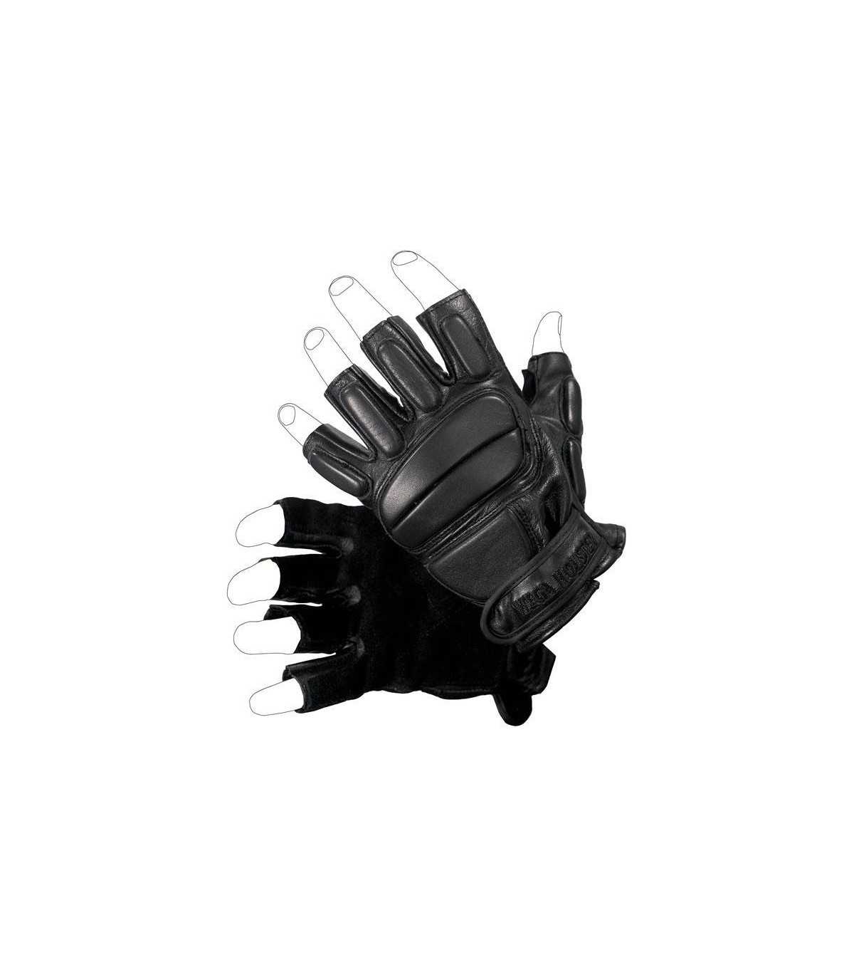 Operative half fingers leather glove with anatomic padded on the back and on the fingers, adjustable velcro clousure, design for operative mission, riots or hardcore assaults where is request an extreme protective and resistent glove
