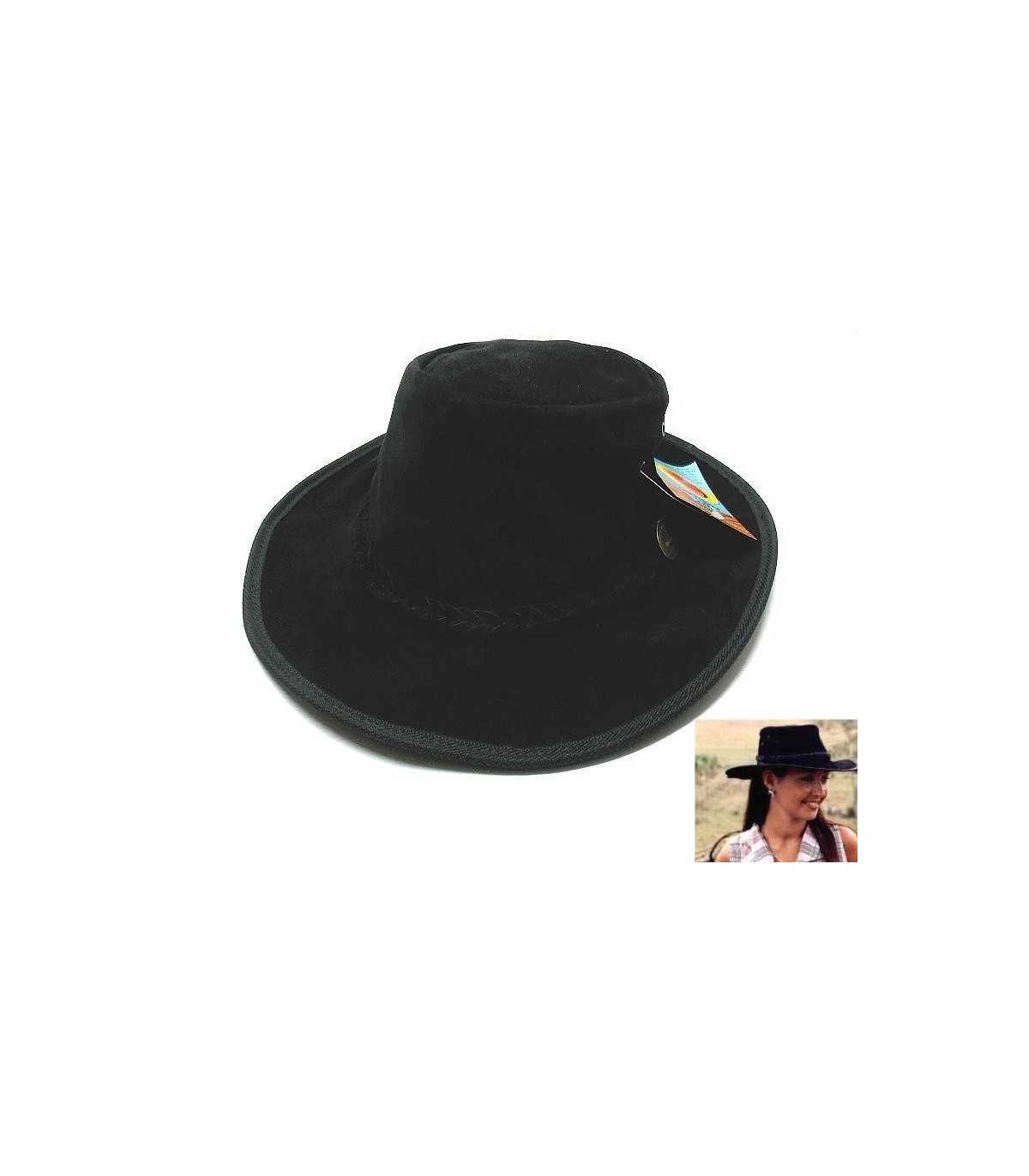 Hat in black suede leather resistant to ultraviolet rays.With three eyelets on each side for greater breathability>br>Sizes available from 56 to 62>br>Australian original product.