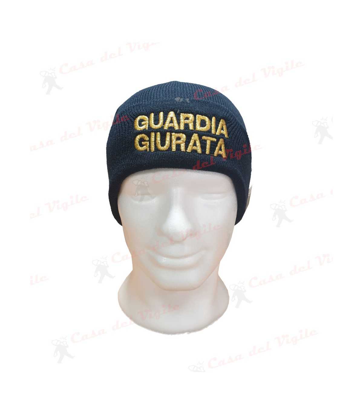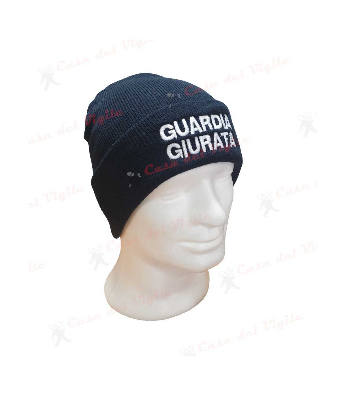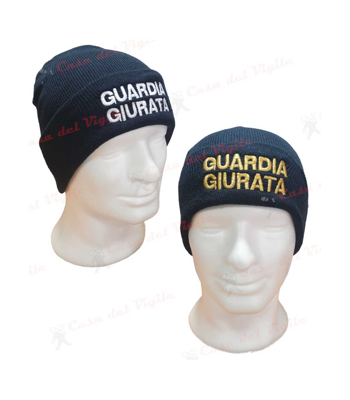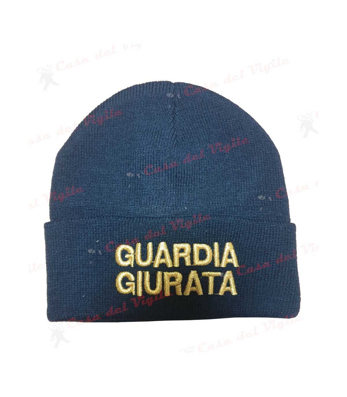 Papalina zuccotto in lana BLU con ricamo GUARDIA GIURTA Oro o Bianco Cappello GPG Vigilanza