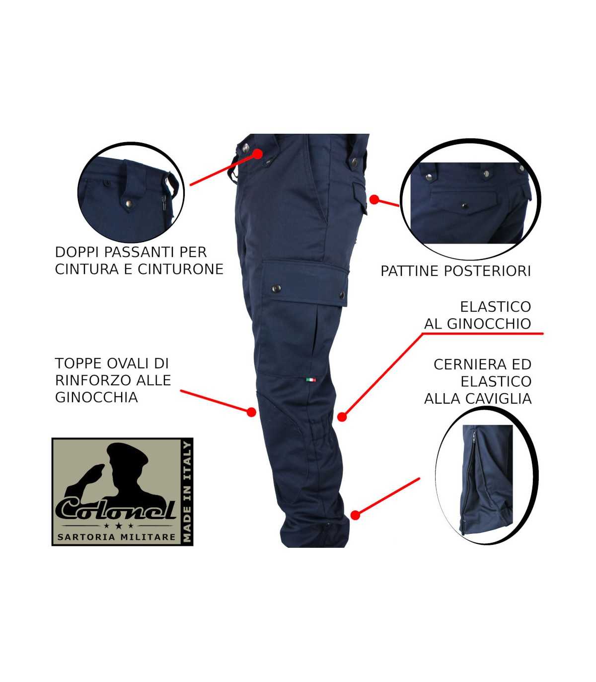 Double belt and belt loops. Comfortable in the tactical-operational field. The small loops are in fact used to tighten the trousers using the velcro under-belt and the belt passes through the wide loops for easy and quick insertion-disengagement.