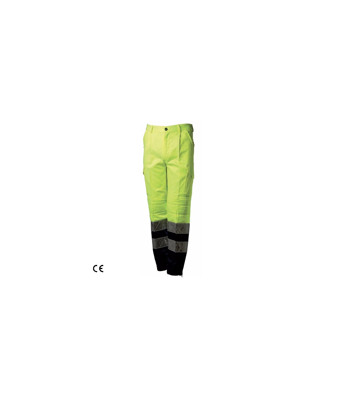 Fluo yellow and navy blue trousers with reflective reflective bands