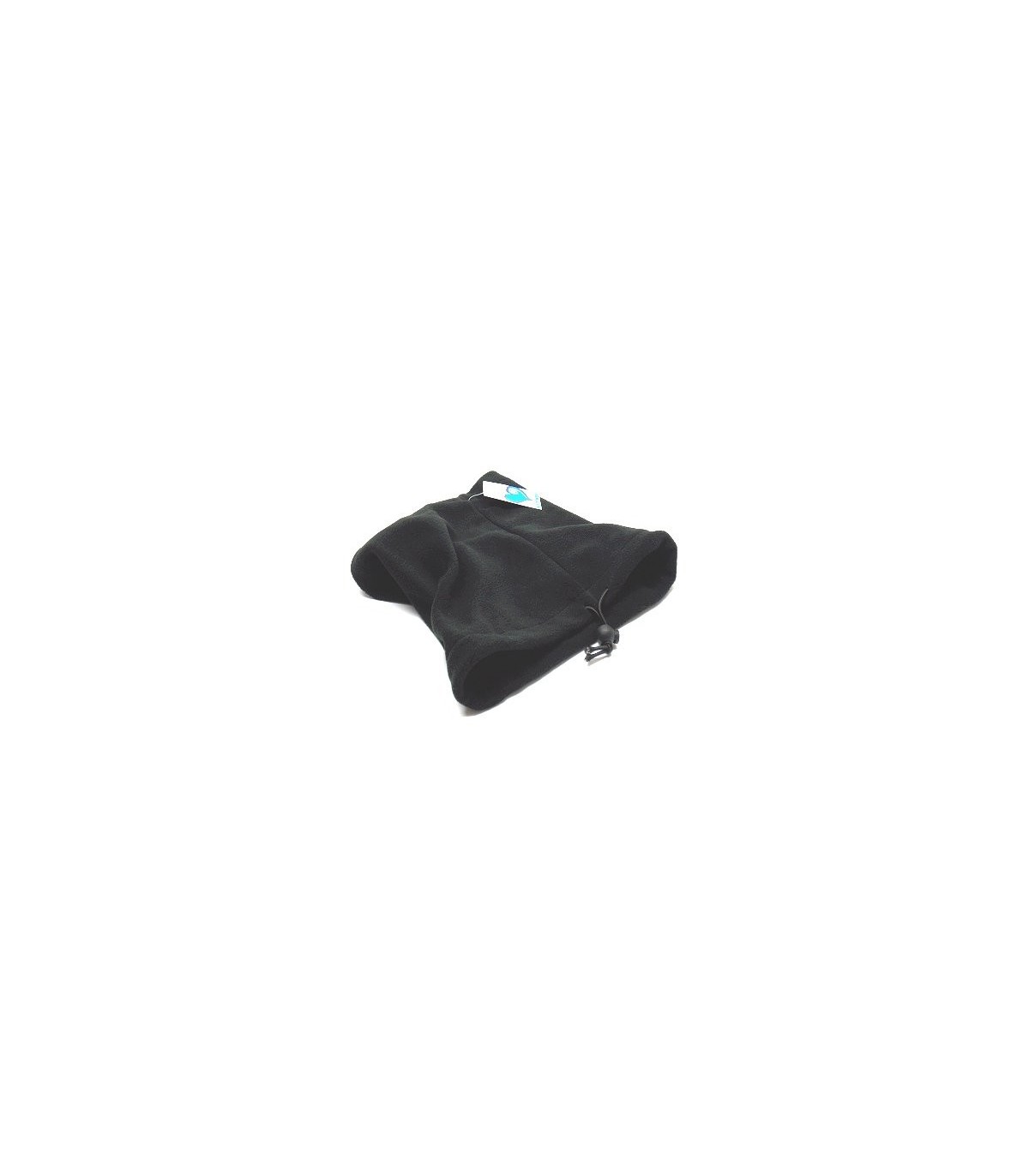 Soft fleece neck warmer in black, with strap adjustment.