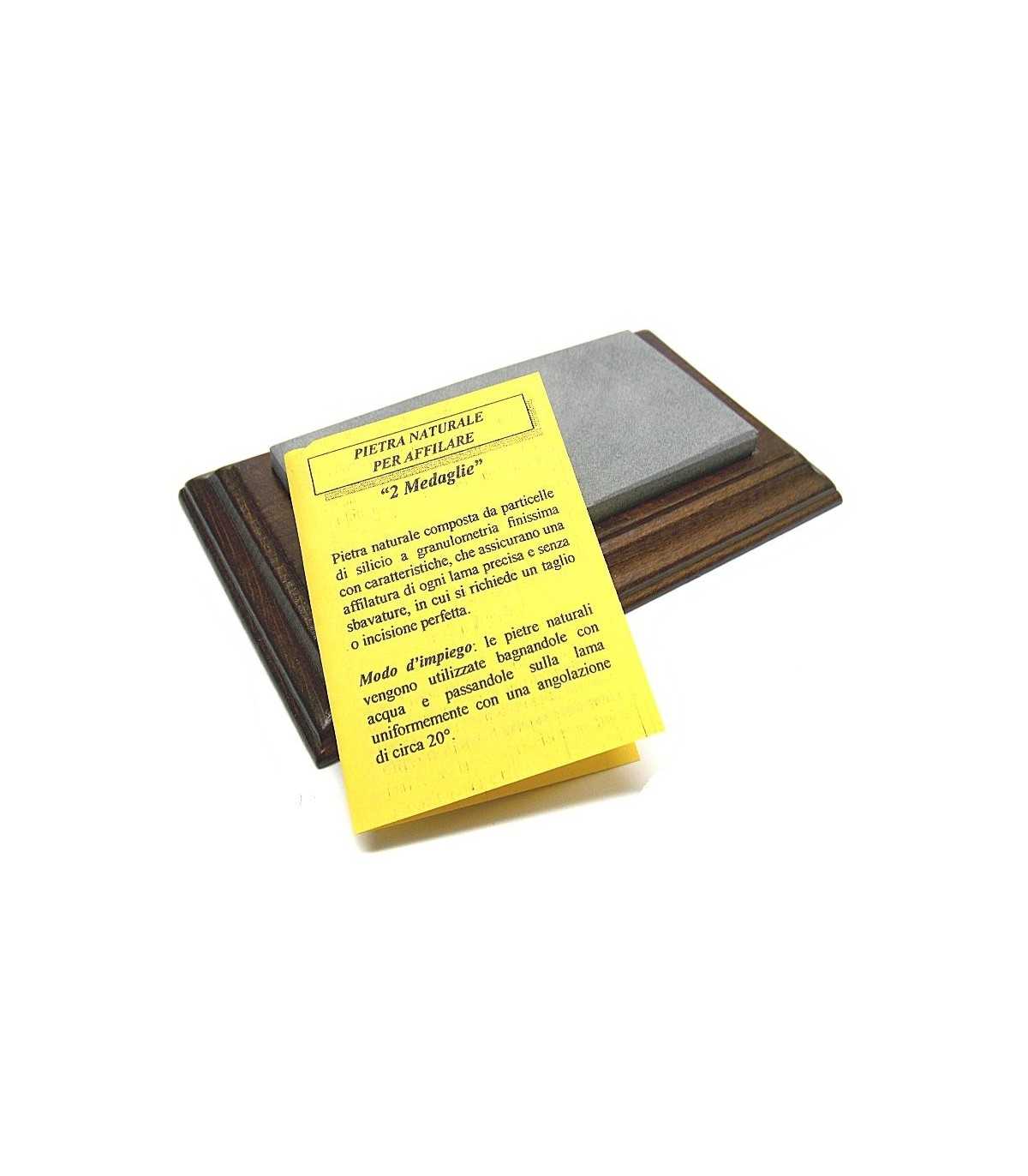 FINE-GRAINED SILICON KNIFE SHARPENING STONE ON A WOODEN BASE. IT ENSURES A MORE PRECISE SHARPENING WITHOUT ANY IMPERFECTION. STONE DIMENSIONS: CM 5 x 10. BASE DIMENSIONS: CM 14 X 8.