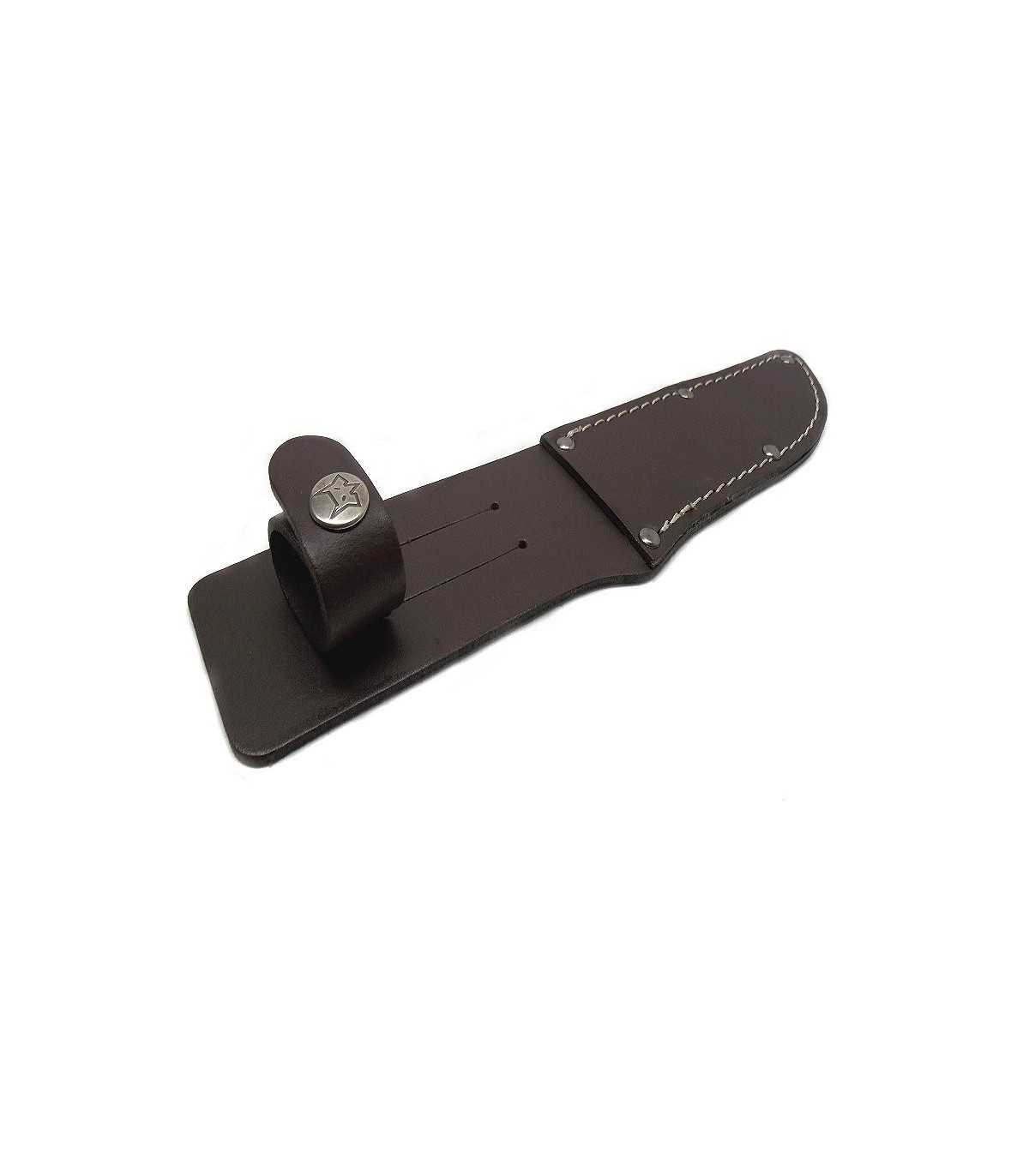FOX KNIFE LEATHER SHEATH FOR FIXED BLADE WITH BELT LOOP (HEIGHT CM 4.5) FOR BLADES (LENGTH UP TO CM 11, WIDTH UP TO CM 2.5). COLOUR: BROWN. SHEATH: LENGTH CM 24, MAXIMUM WIDTH CM 5.5. MADE IN ITALY.