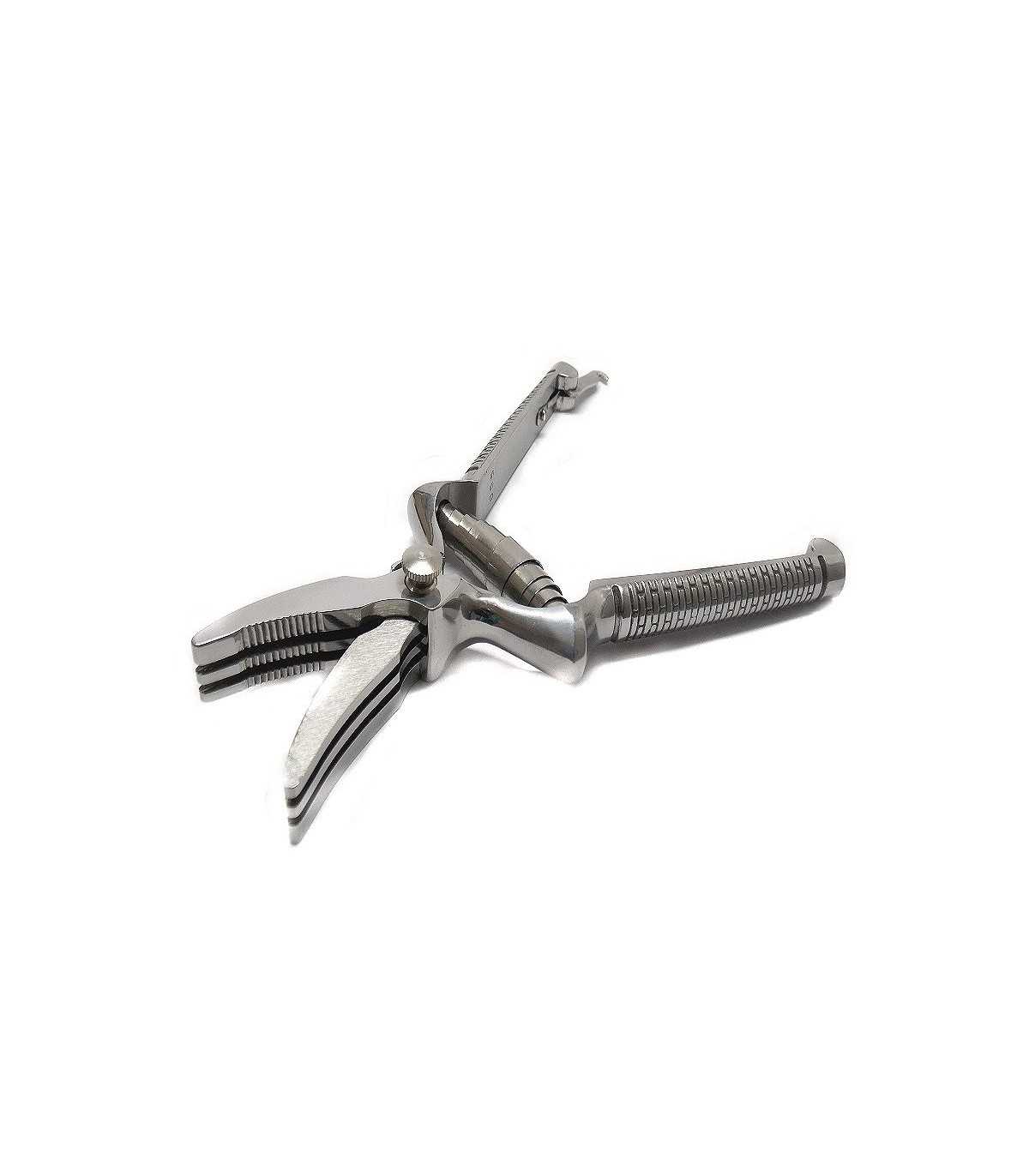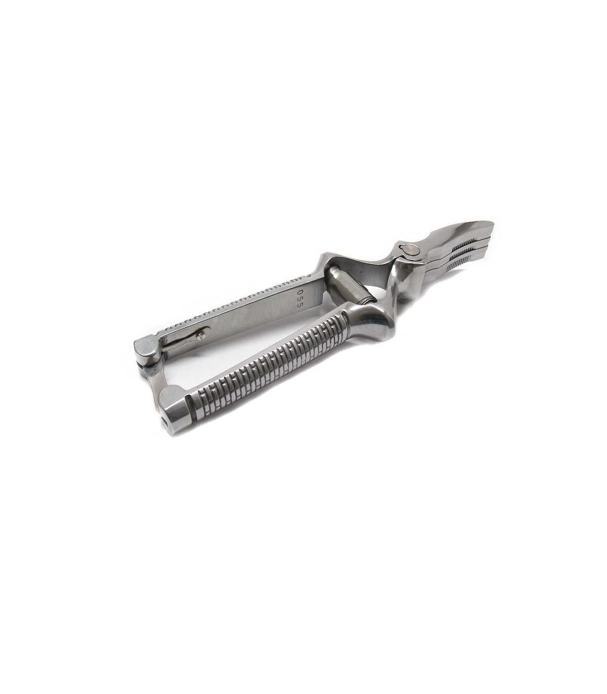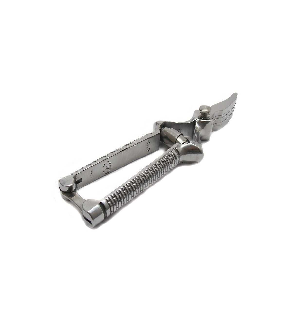 Foodstuff, glossy finish, toothed control, adjustable central screw, handle with grooves for a perfect grip and safety closure. Ideal for children and seniors. Length 18 cm. Produced in Italy.