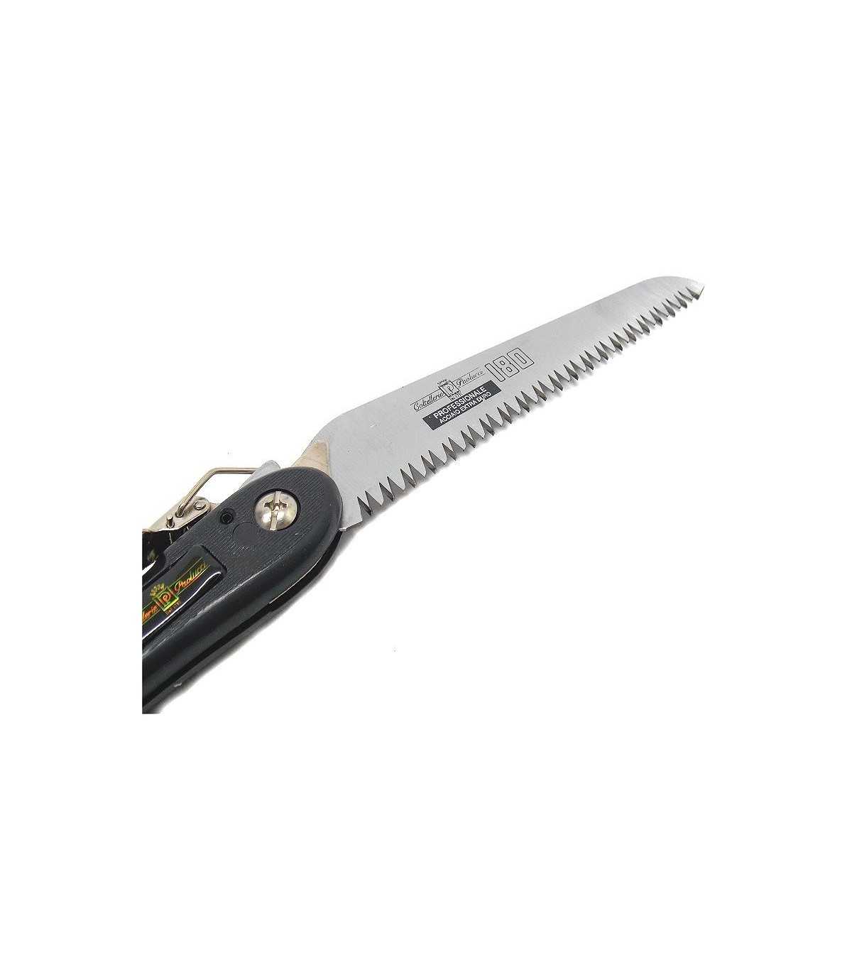 PRUNING FOLDING HACKSAW WITH STAINLESS STEEL BLADE, RUBBER HANDLE. BLADE LENGTH: CM 18. TOTAL LENGTH: CM 39.