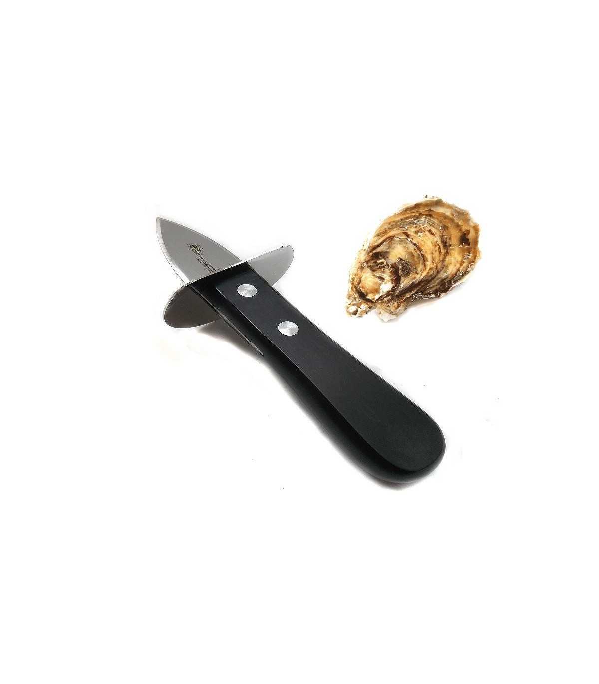 Kitchen knife. OYSTER KNIFE WITH BLACK WOODEN HANDLE. BLADE LENGTH: CM 5. BLADE WIDTH: CM 2.5. TOTAL LENGTH: CM 15.5.