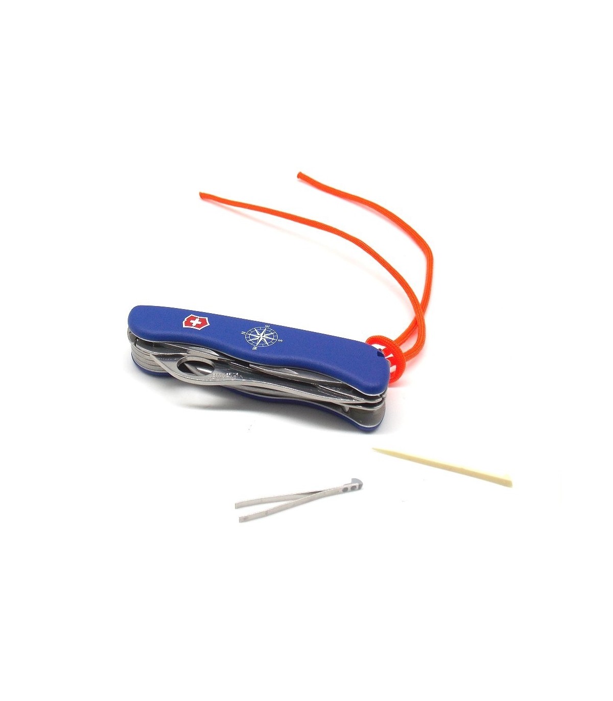 Funzioni: lama grande ed ondulata, apribottiglie bloccabile, spelafili, cacciavite 7,5 mm, aprigrilli, sciogli nodi, apriscatole, cacciavite 3 mm, alesatore, punteruolo, cavatappi, cacciavite Phillips, pinze, tronchese, crimpa fili, pinzette, stuzzicadenti, anello portachiavi