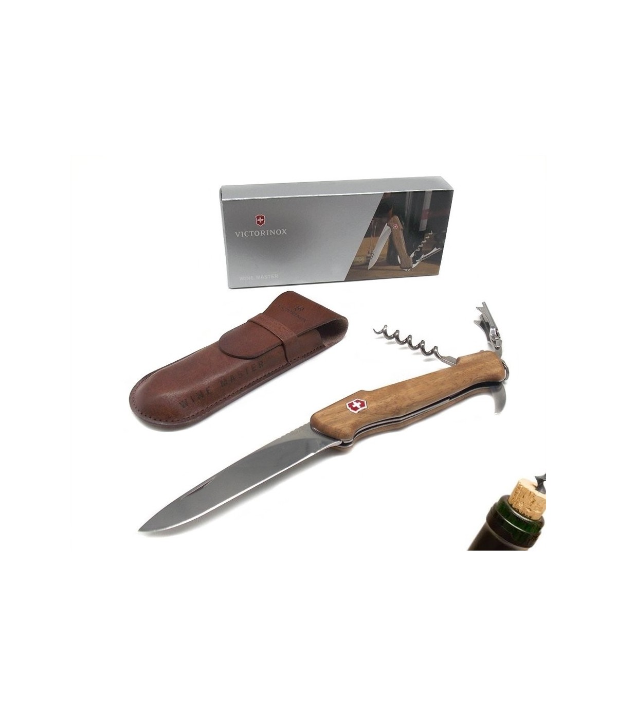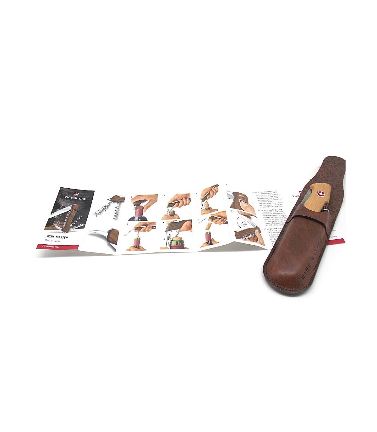 Dotato di apribottiglie, cavatappi, seghetto, anellino, fodero in cuoio