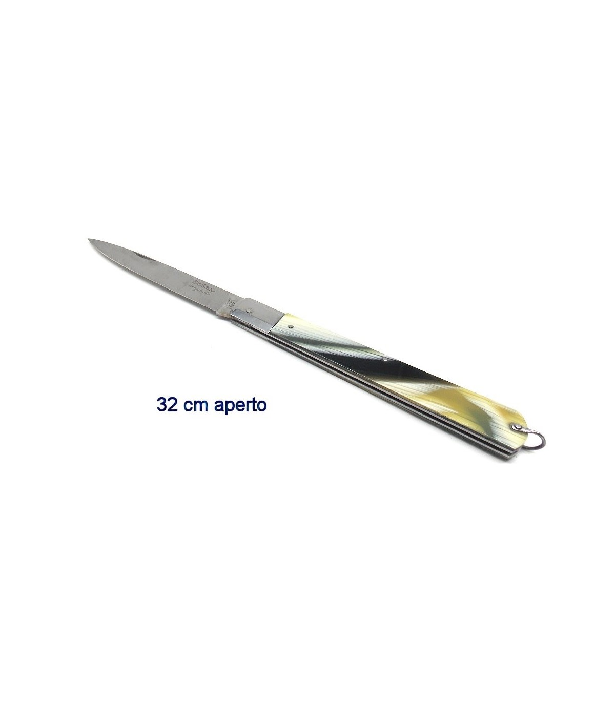 Lunghezza lama 13,5 cm, larghezza lama 2 cm, lunghezza totale aperto 32 cm