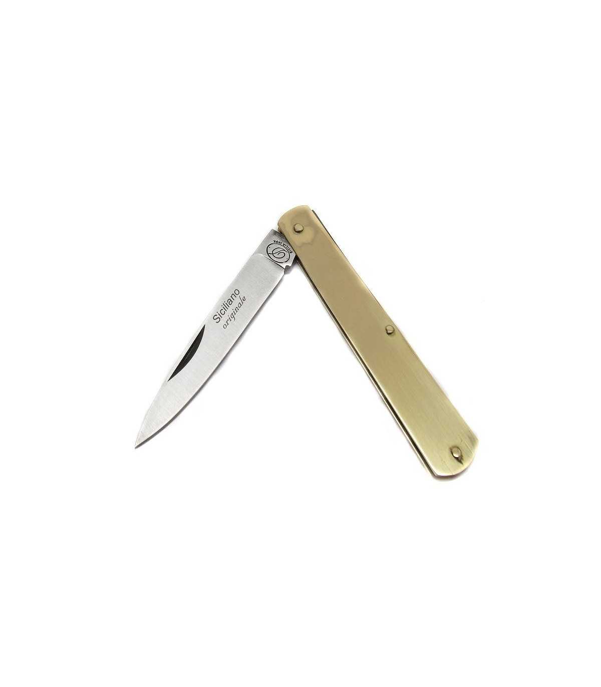 SPORT KNIFE. SICILIAN KNIFE WITH BRASS HANDLE. BLADE LENGTH: CM 6. BLADE WIDTH: CM 1. OPENED LENGTH: CM 15.