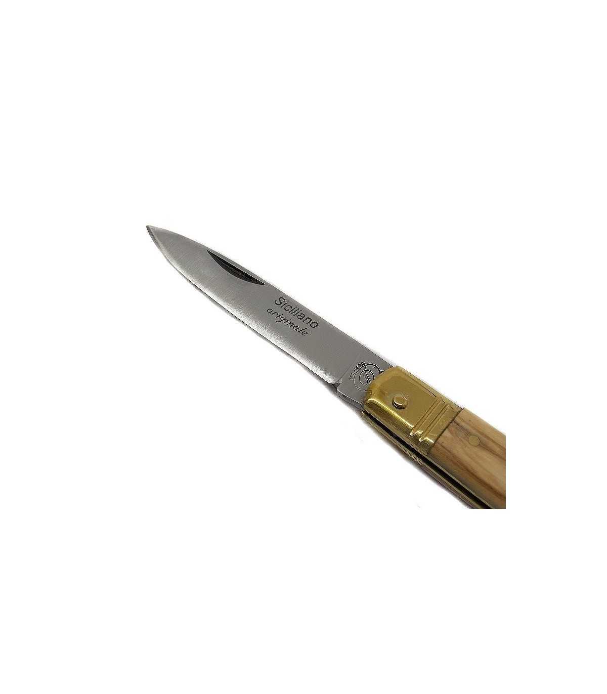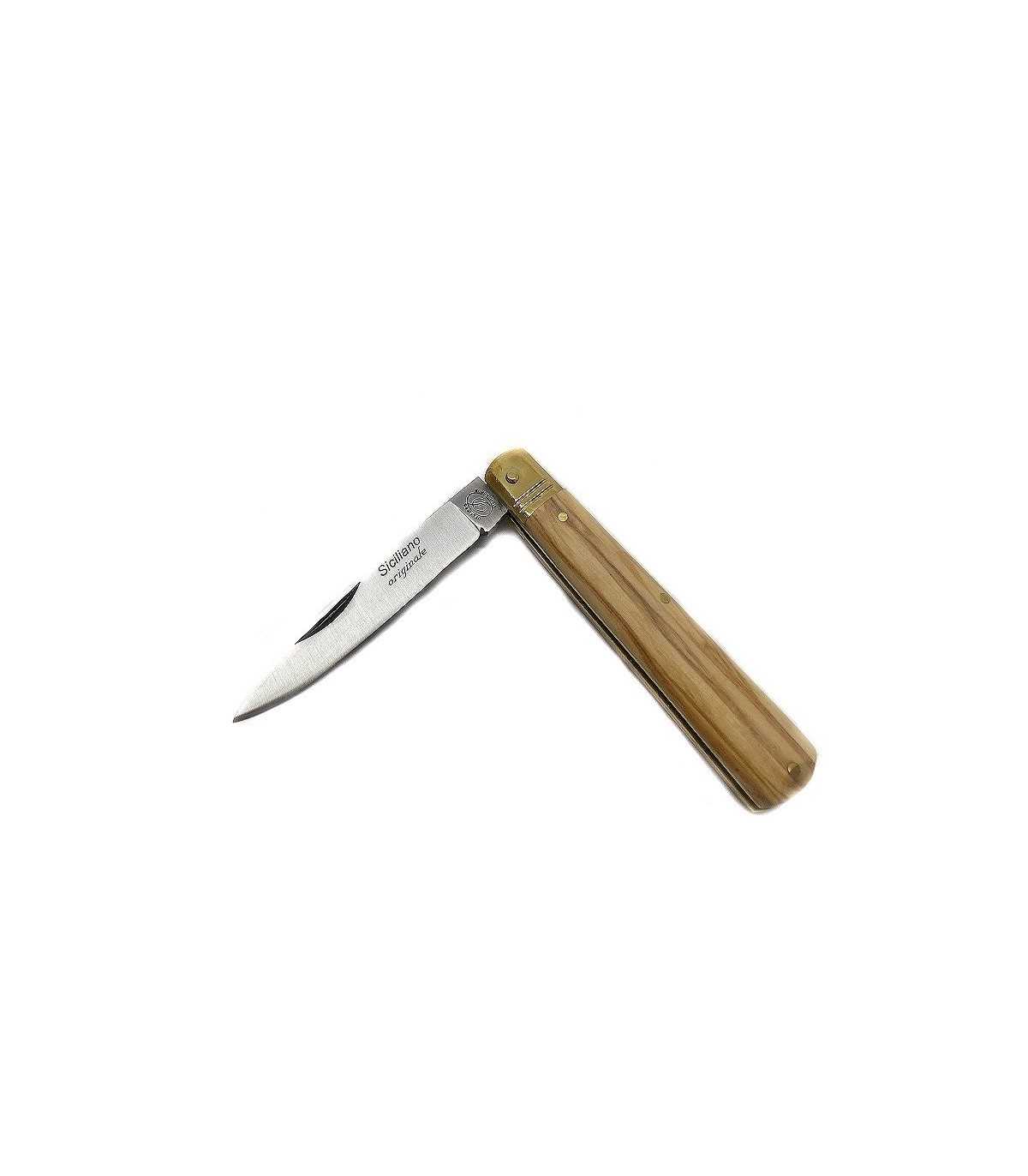 SPORTS KNIFE. SICILIAN KNIFE WITH OLIVE TREE HANDLE. BLADE LENGTH: CM 6. BLADE WIDTH: CM 1. OPENED LENGTH: CM 15. Blade in AISI 420 J2 steel. MADE IN ITALY.
