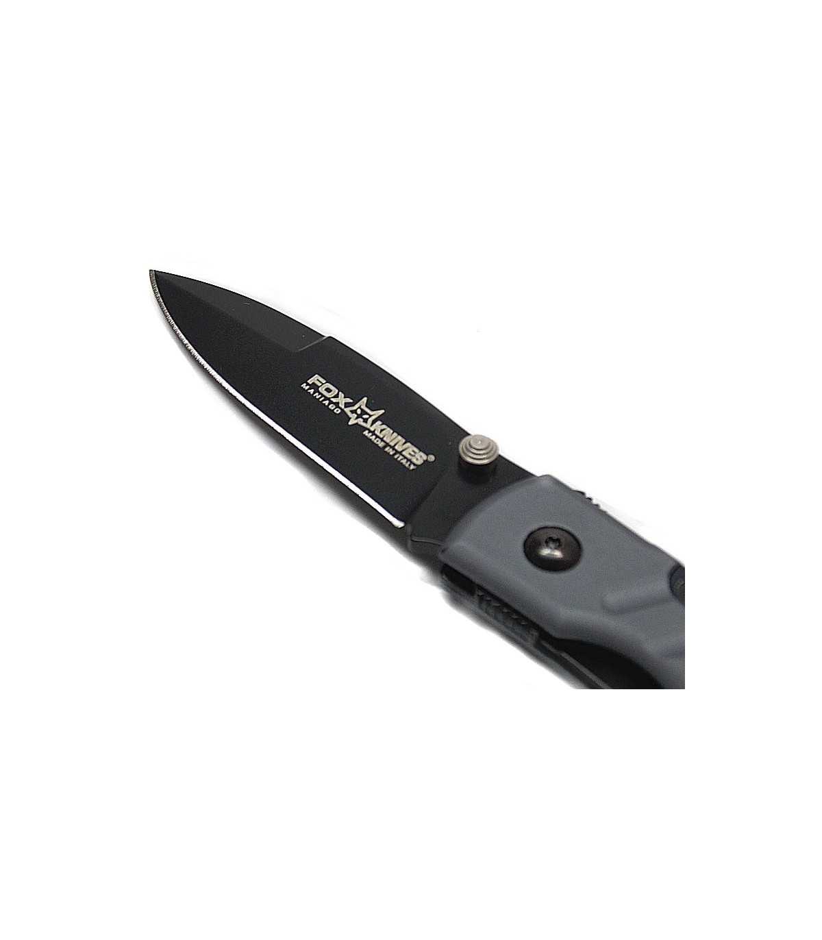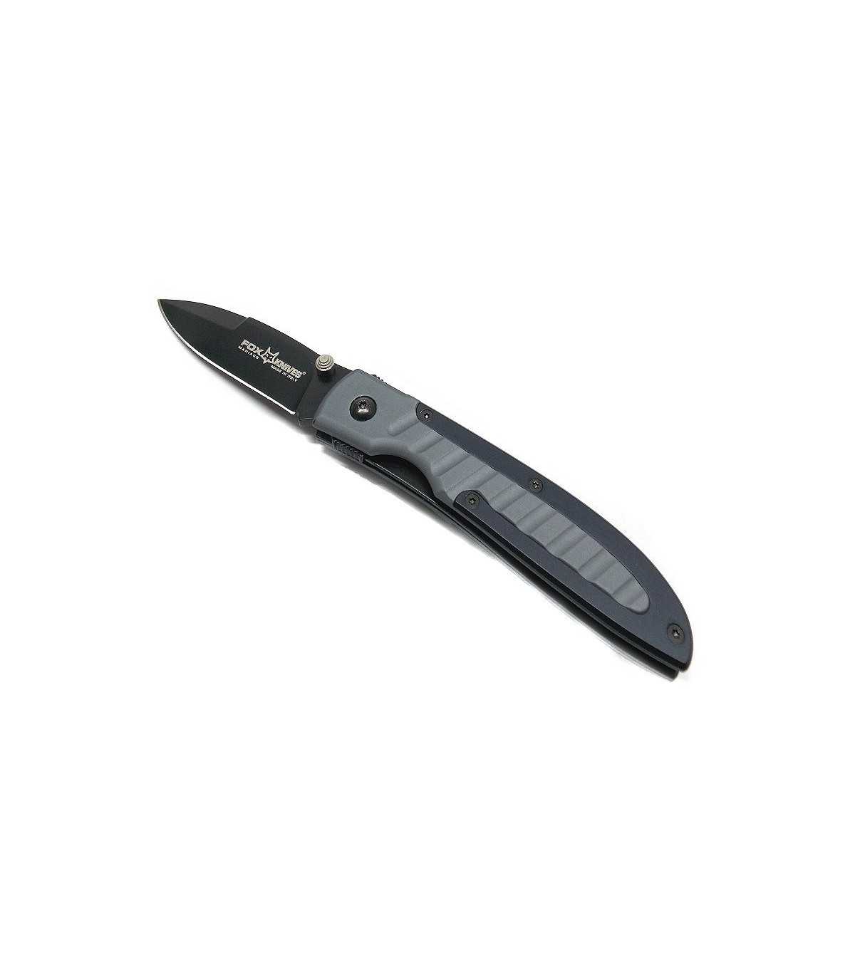 SPORTS KNIFE.FOX ACQUATONE KNIFE WITH BLACK BLADE, BELT CLIP, METAL AND ANTI-SLIP RUBBER HANDLE. BLADE LENGTH: CM 7. BLADE WIDTH: CM 2. OPENED LENGTH: CM 19.