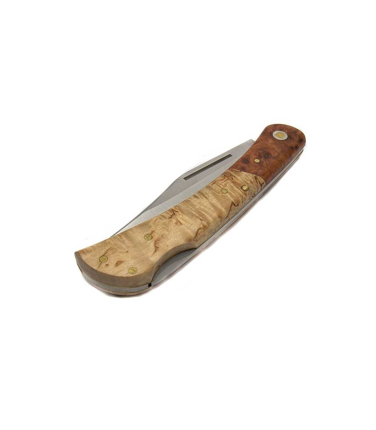 SPORTS KNIFE. FOX LARGE KNIFE WITH BIRCH-ROOT HANDLE. BLADE LENGTH: CM 9. BLADE WIDTH: CM 2. TOTAL LENGTH: CM 21.5. MADE IN ITALY.