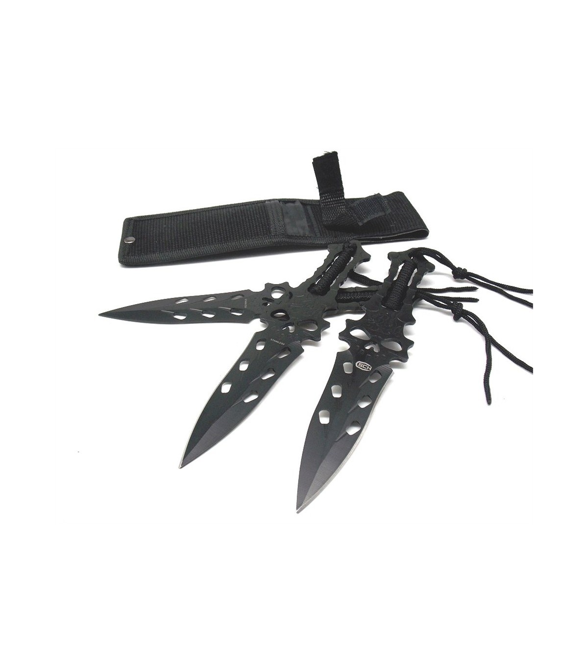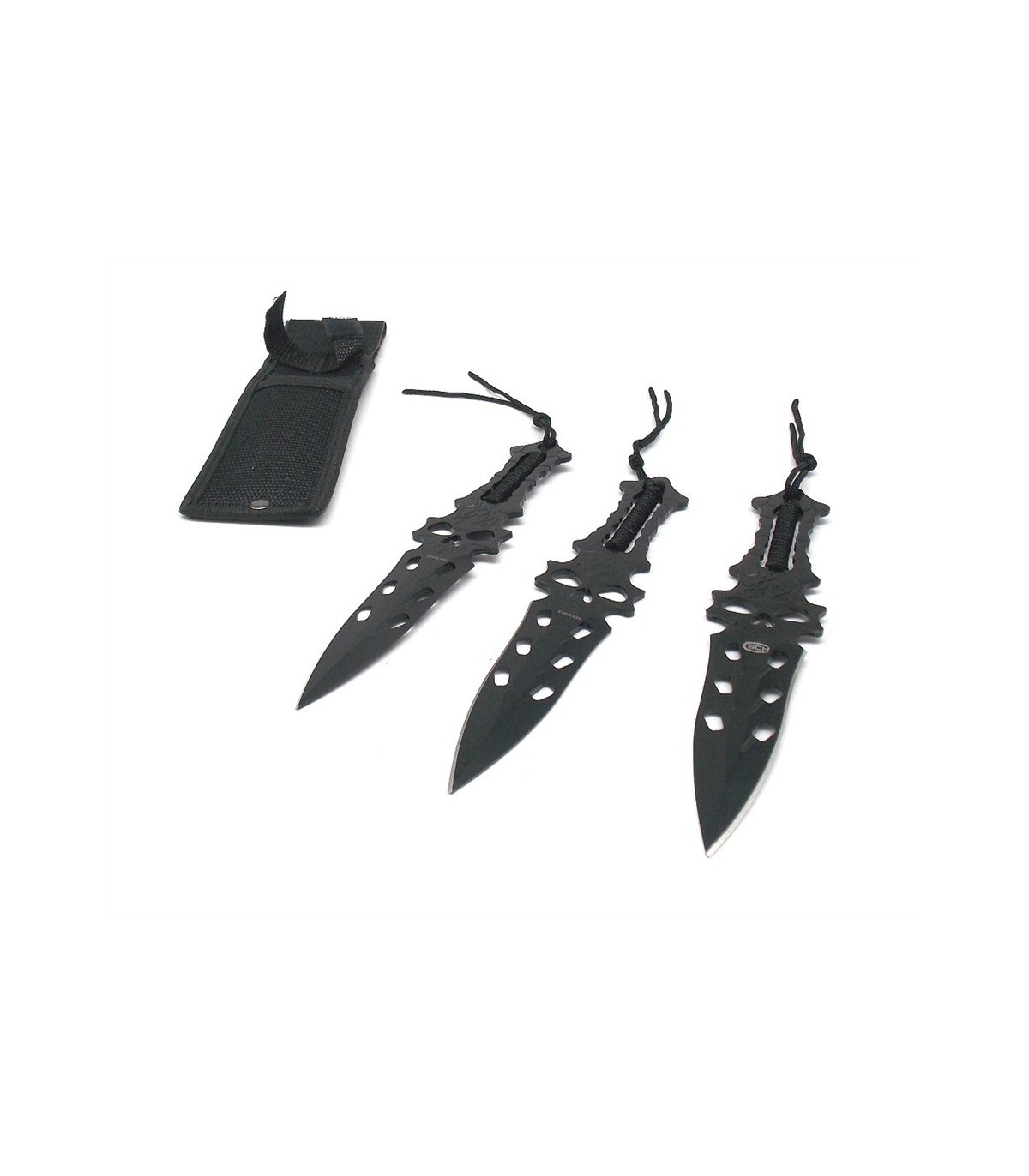 Set da 3 coltelli sportivi da lancio in metallo nero con corda