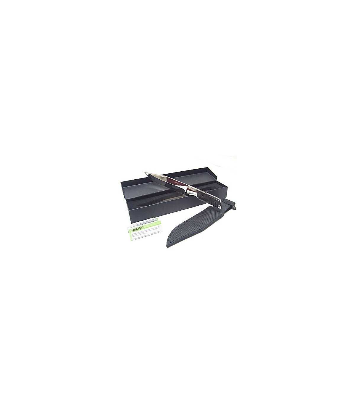 SPORTS KNIFE. Blade length 20.5 cm, maximum blade width of 4 cm, total length of 35.5 cm. With hole for putting strap. Stainless steel knife 440 C. Steel handle, single piece with the blade. Weight: 580 grams. It equipped with cover in black canvas, a rigid cardboard box.