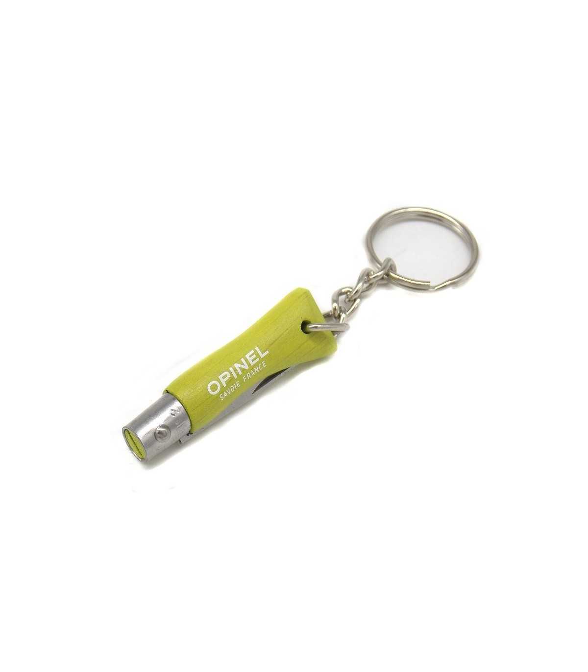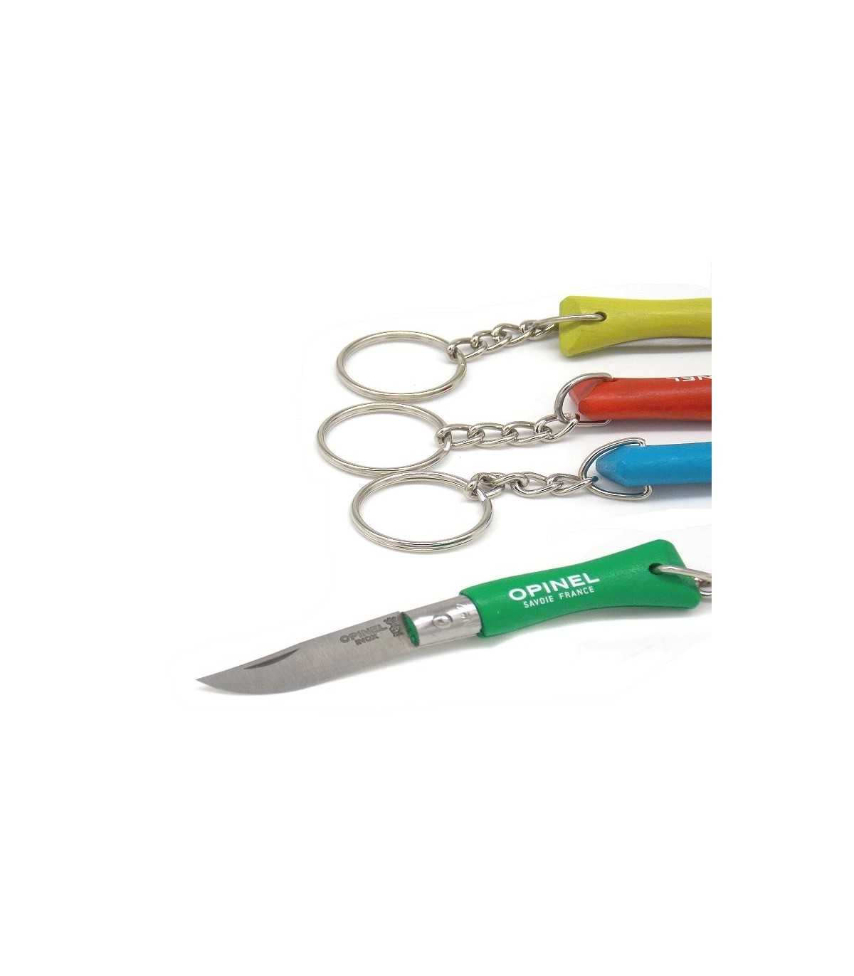 Sports knife. Blade length 3 cm, blade width 0.8 cm, total length open with key ring 13 cm. Handle in colored beech wood, blade in sandvik stainless steel. Available colors of the handle: red, green, light olive green, light blue. Made in France.