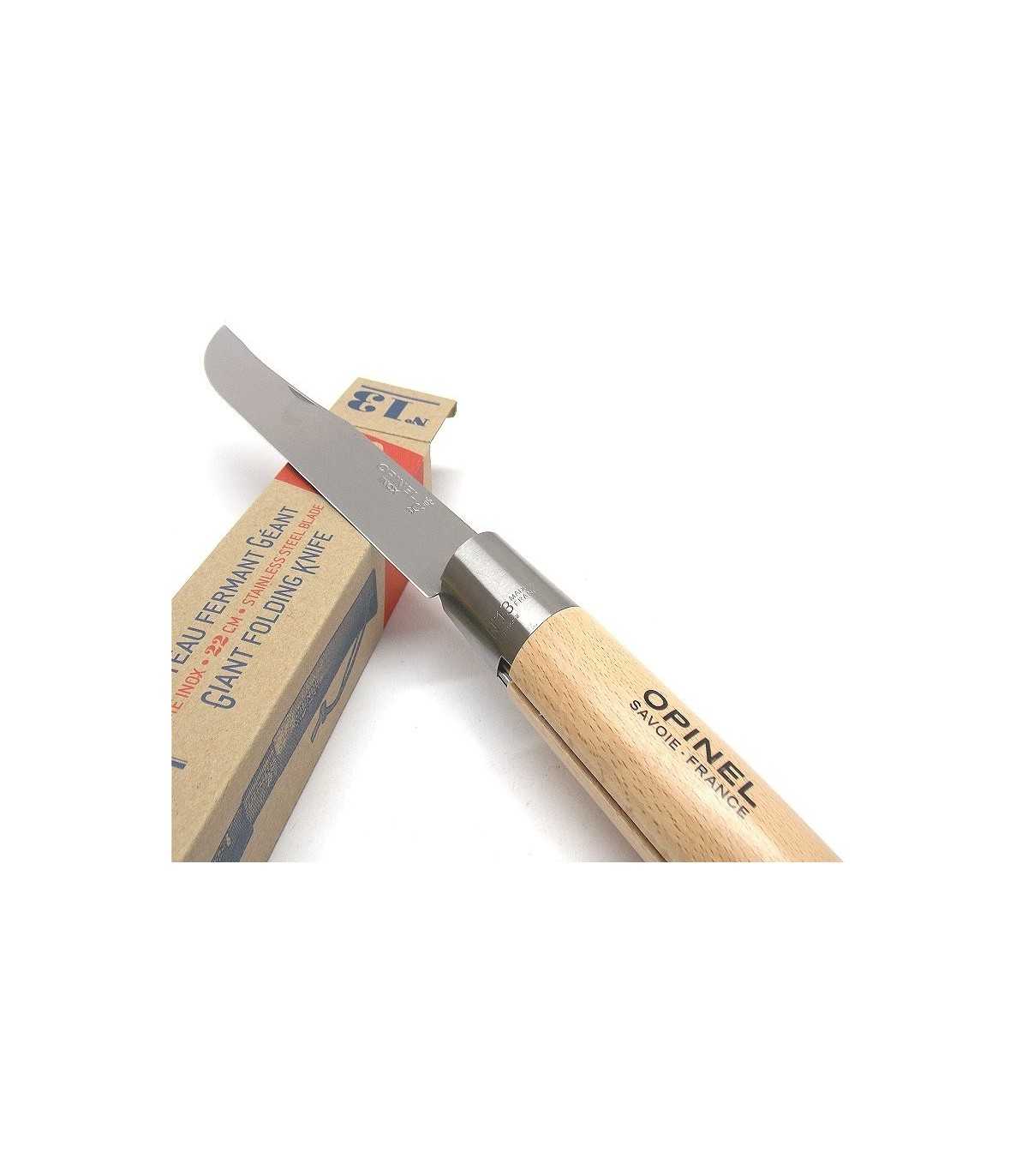 Sports Knife.OPINEL LARGE KNIFE N°13 WITH WOODEN HANDLE. MADE IN FRANCE. BLADE LENGTH: CM 23. BLADE WIDTH: CM 4. OPENED LENGTH: CM 51. PRODUCED IN FRANCE.
