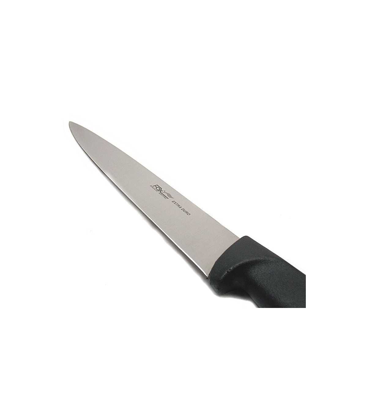 FOX COOKING SLAUGHTER KNIFE WITH HIGH-STRENGTH STAINLESS STEEL BLADE, ROUGH RUBBER PLASTIC HANDLE. BLADE LENGTH: CM 19. BLADE WIDTH: CM 3. TOTAL LENGTH: CM 33.