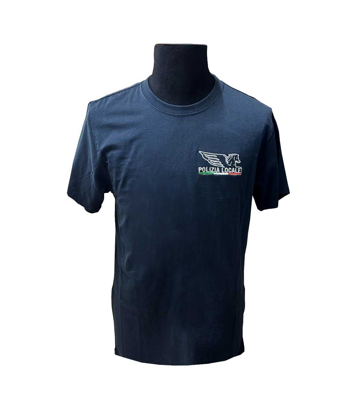 T-shirt maglietta mezza manica POLIZIA LOCALE con ricamo PEGASO su petto lato cuore