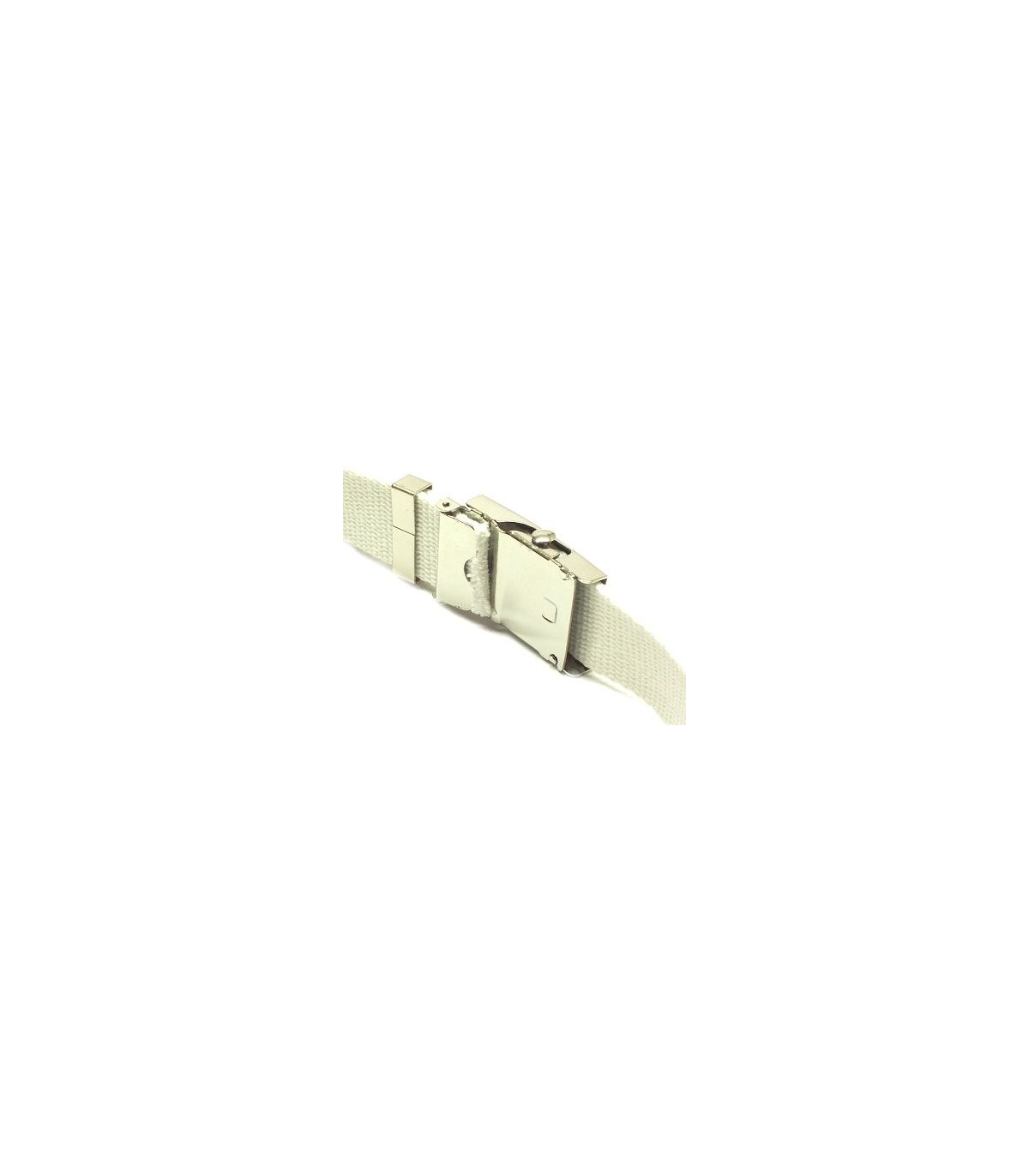 White canvas belt with metal window sticker buckle Sicilian municipal police emblem (polizia municipale - regione sicilia). Height: cm 4. Length: cm 130.