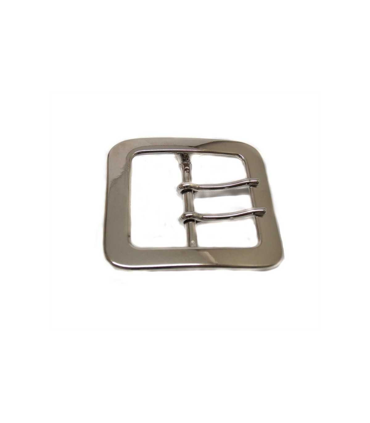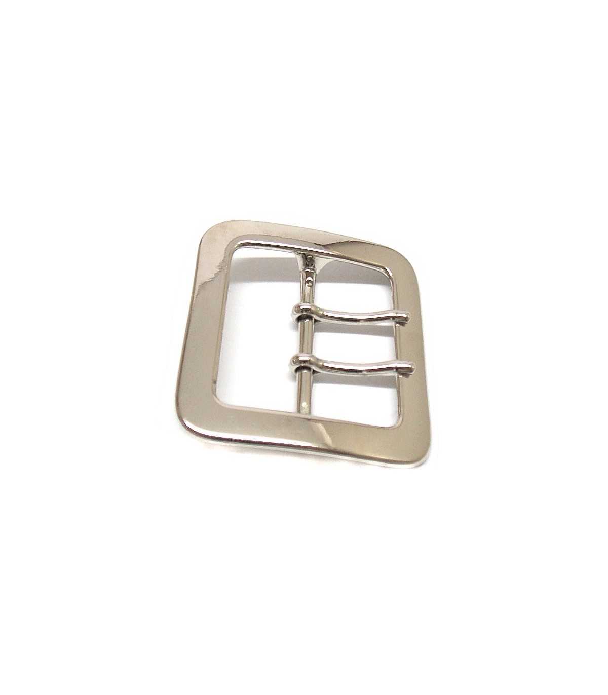 Metal buckle with two barbs, for 5 cm high belts>br>Replacement belt buckle with code: 81568130, 81583898>br>Round bar on the back>br>Produced in Italy.
