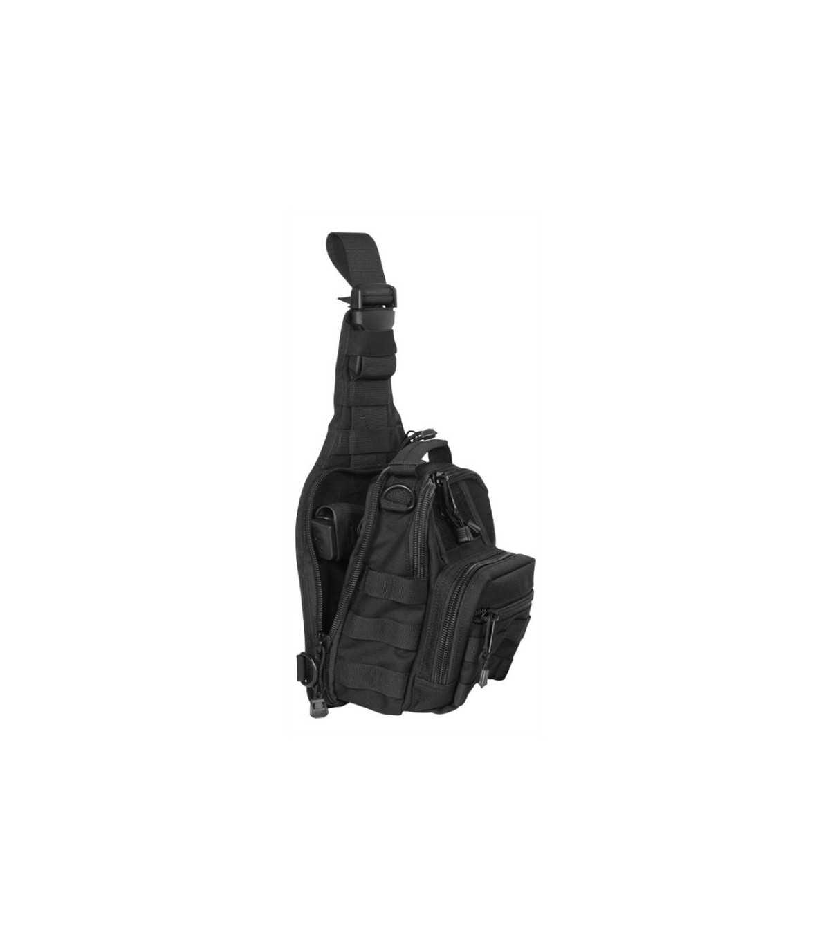 Padded shoulder strap for use as one strap, can be worn on the back and a rotating position front wards in case of danger or needing a fast weapon extraction. Loop for belt wearing with thigh anchor strap.