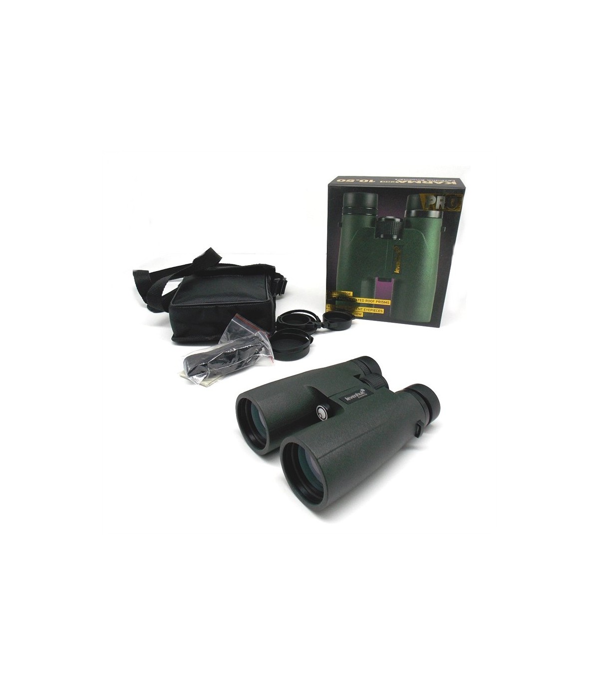 Dotato di: tracolla, panno per la pulizia, coperchi per oculari ed obiettivi, custodia semirigida in tela nera con tracolla regolabile e passante per cinture alte 5 cm