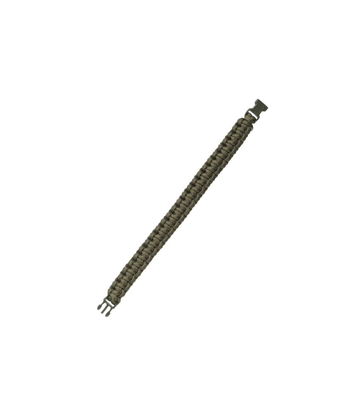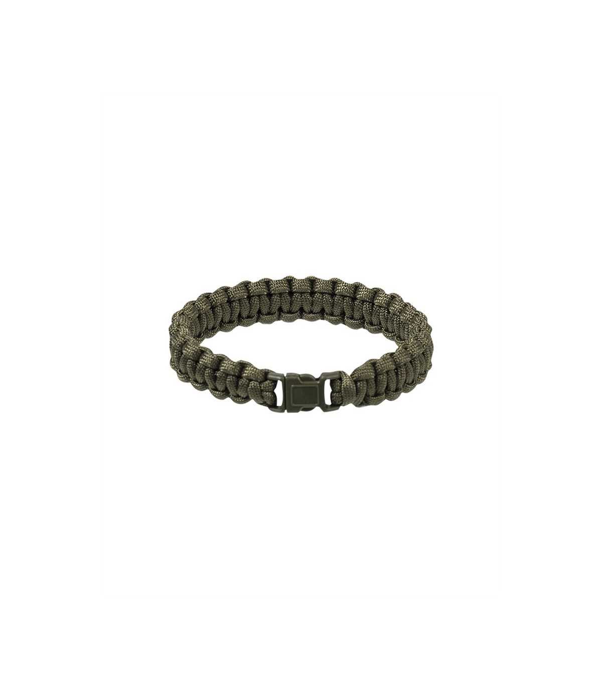 Bracelet made of braided parachute rope with clip fastener.