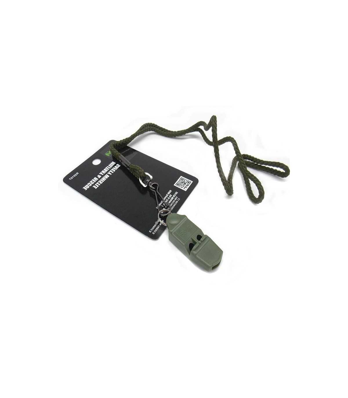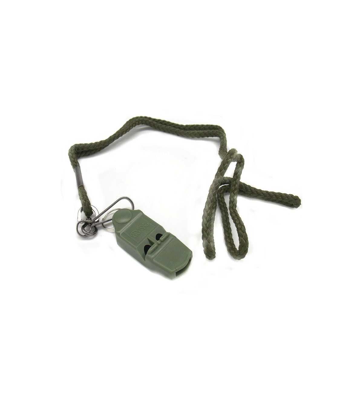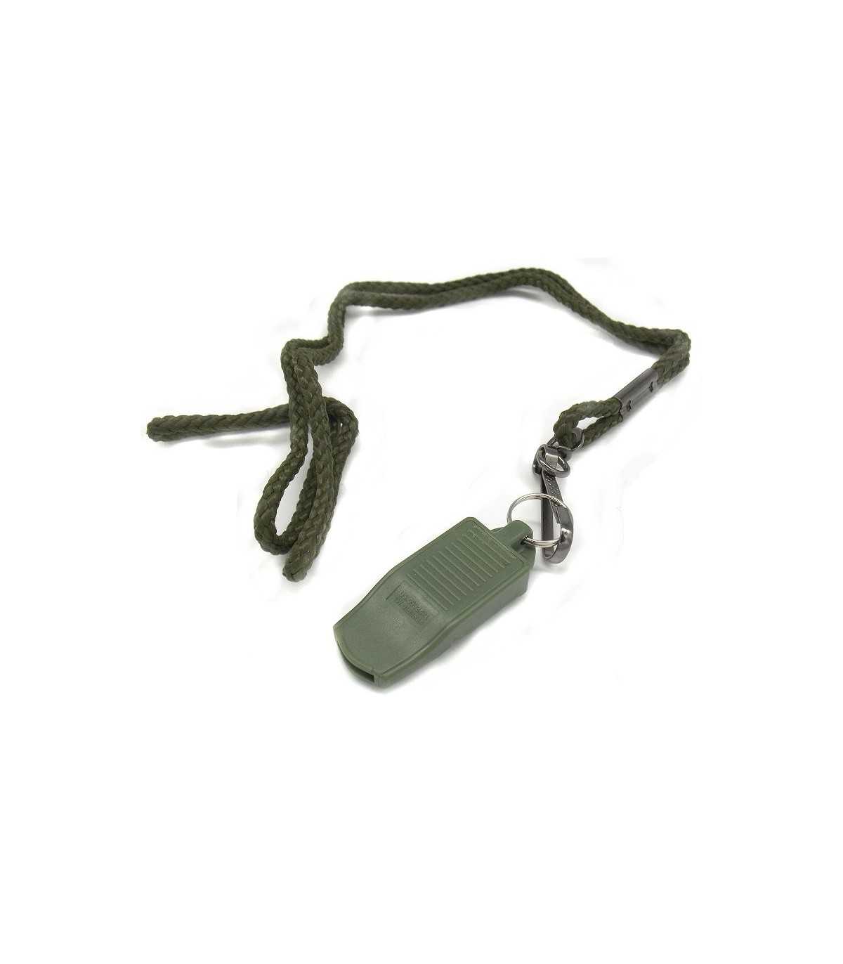 2-tone green plastic whistle with string and carabiner>br>Length 5.6 cm, width 2.4 cm.