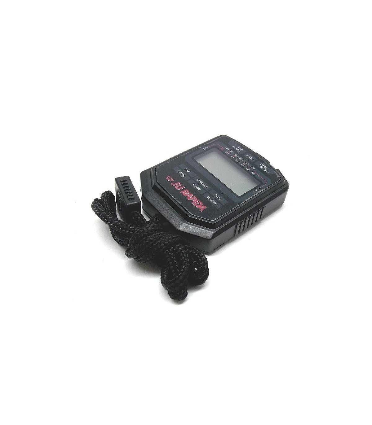 SPEED PLASTIC TIMER WITH MONTH, DATE, DAY, HOUR, MINUTES AND SECONDS; THEN ALARM, 1/100 SECOND CHRONOGRAPH, AUTOMATIC SPEED CONTROL, CALENDAR PROGRAMMED TO WORK FOUR YEARS, BATTERY INCLUDED, ADJUSTABLE STRAP
