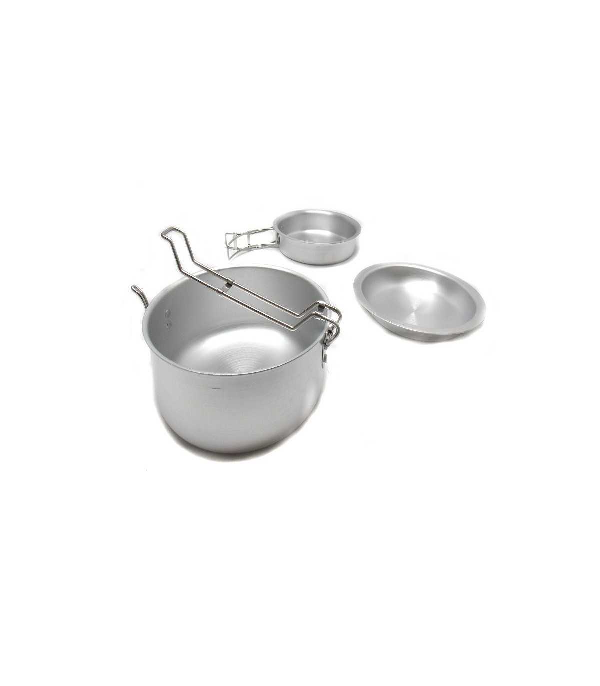 COMES WITH 1 SAUCEPAN WITH CLOSING HANDLE, 1 PAN WITH FOLDING HANDLE, 1 ALUMINIUM DISH