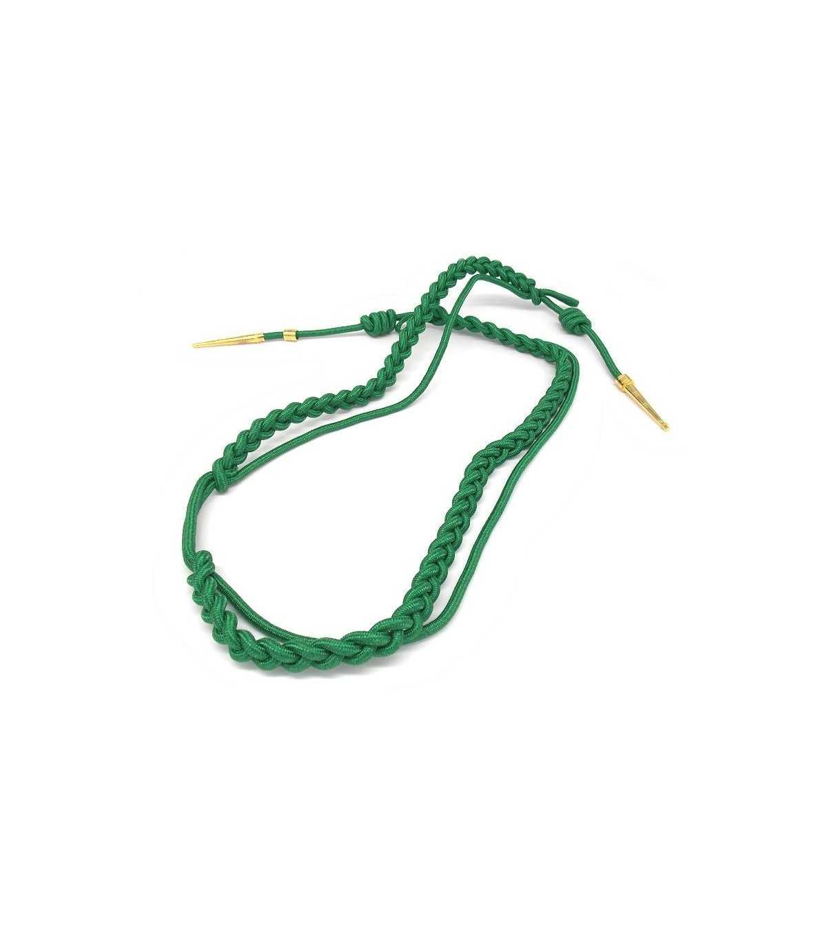 Cord with metal tips>br>Total length about 163 cm, metal tip length 7.5 cm>br>Rayon material, in tubular fabric with internal core>br>Green colour>br>Golden metal tips.