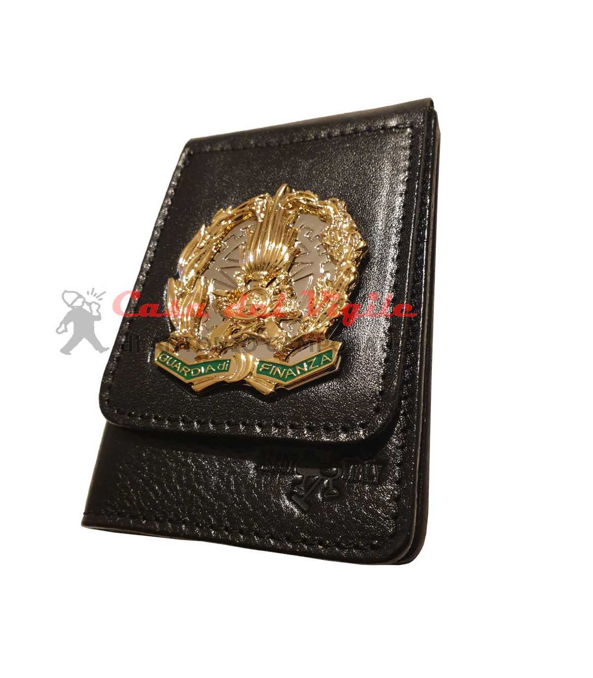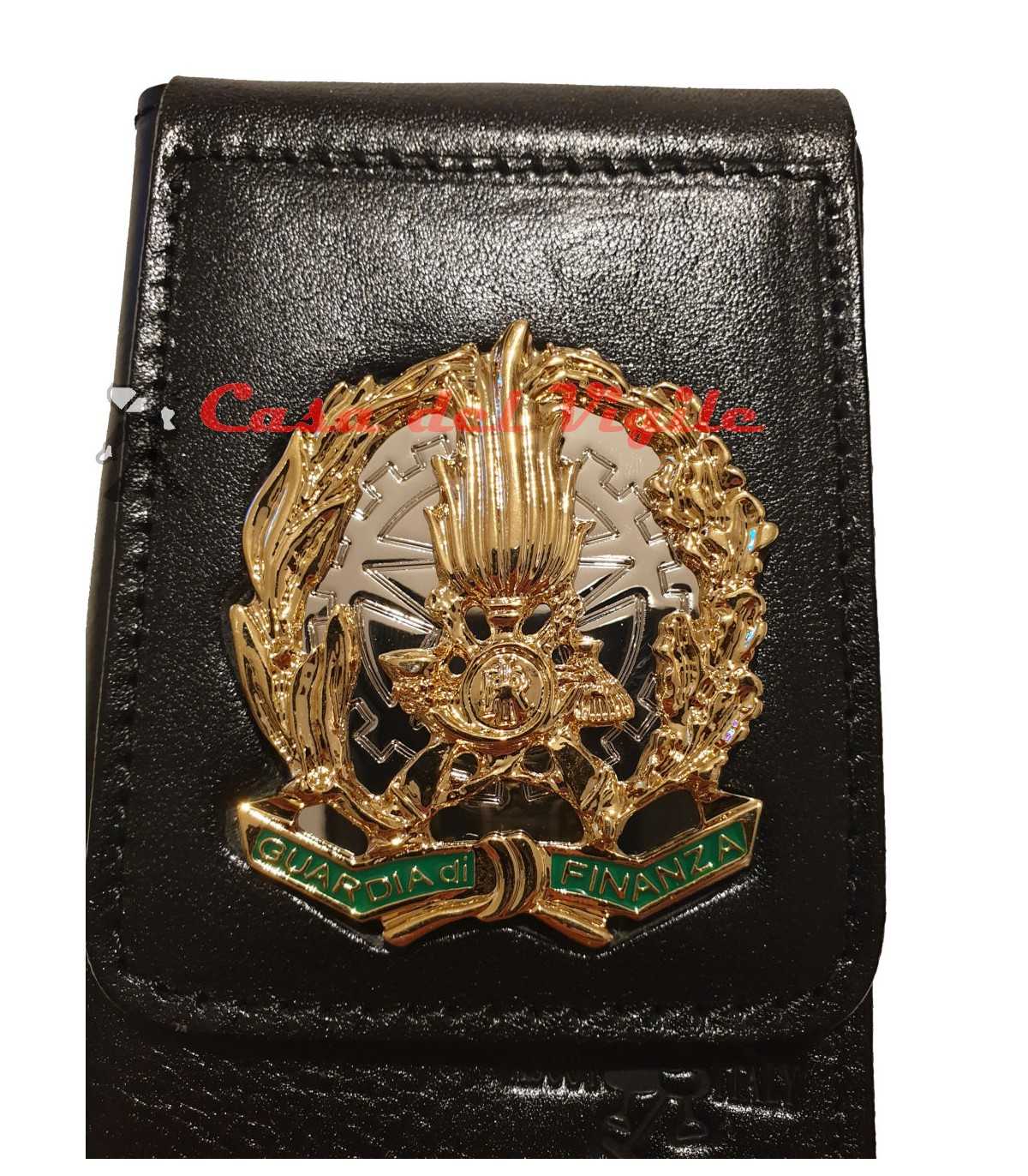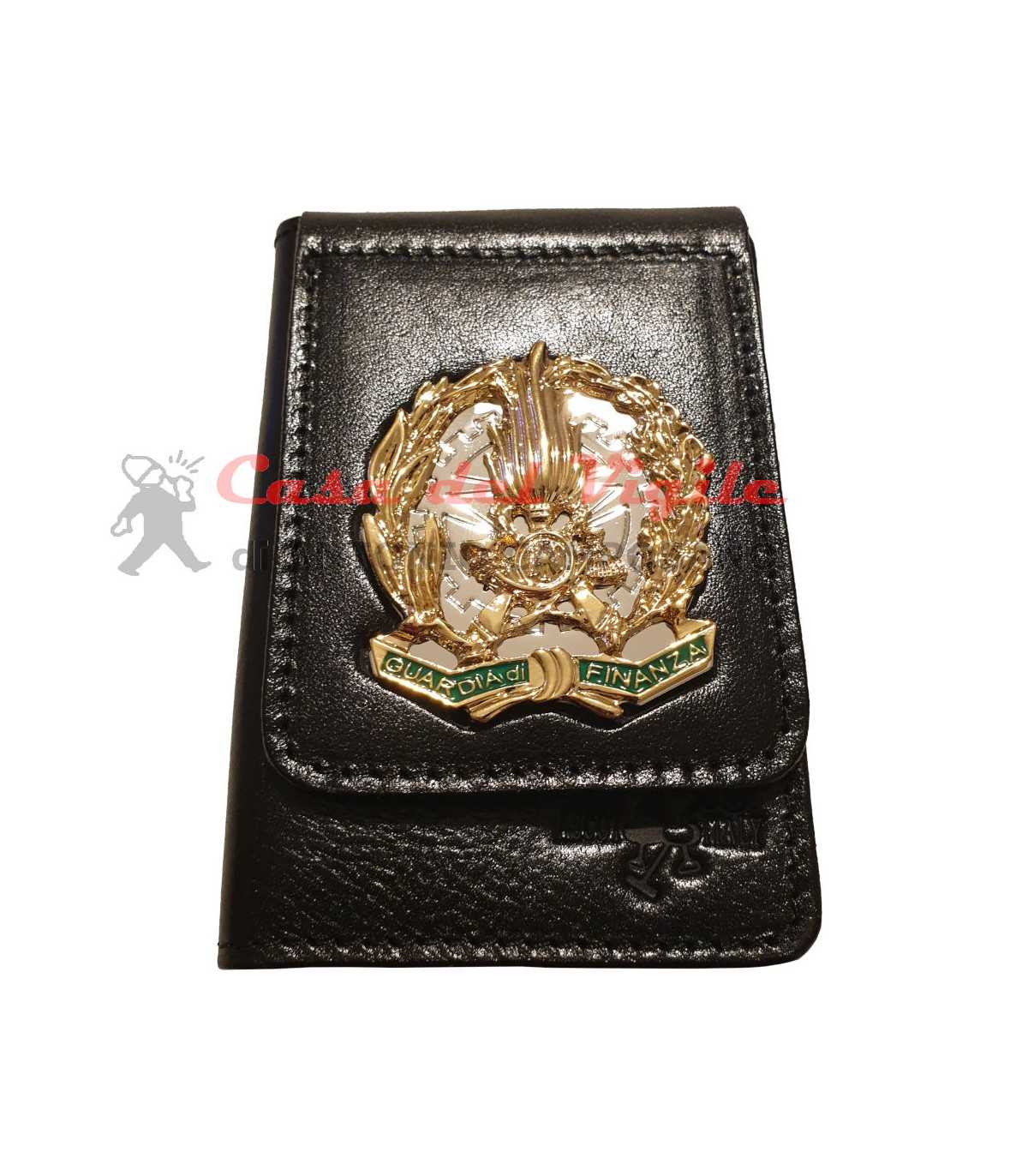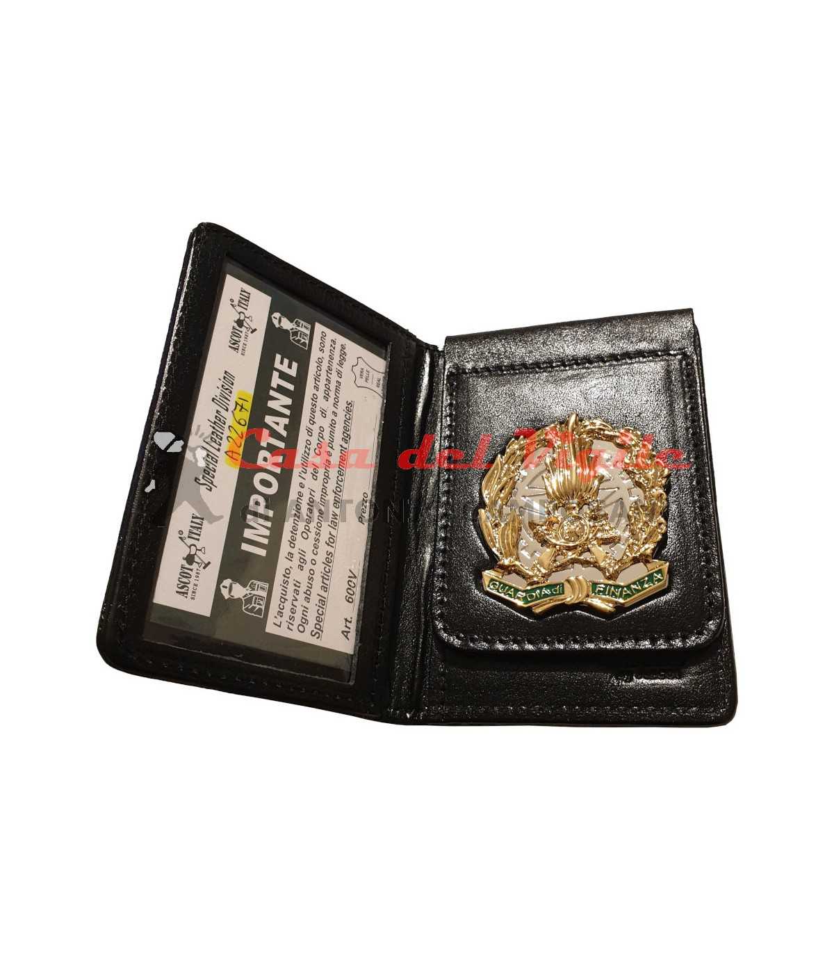Portafoglio ASCOT verticale in cuoio GUARDIA DI FINANZA con placca distintivo in metallo con clip estraibile GDF