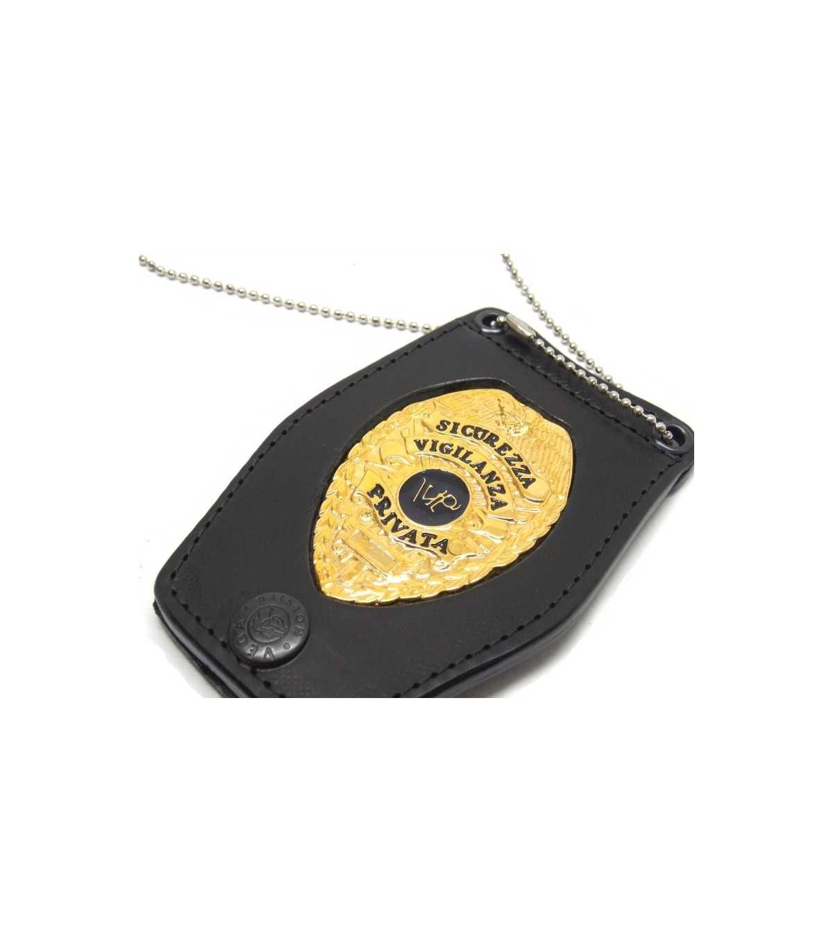 VEGA HOLSTER SICUREZZA VIGILANZA PRIVATA - PRIVATE SECURITY GUARD BADGE HOLDER 1WB48 MADE OF LEATHER, WITH CHAIN, OPENABLE BELT LOOP