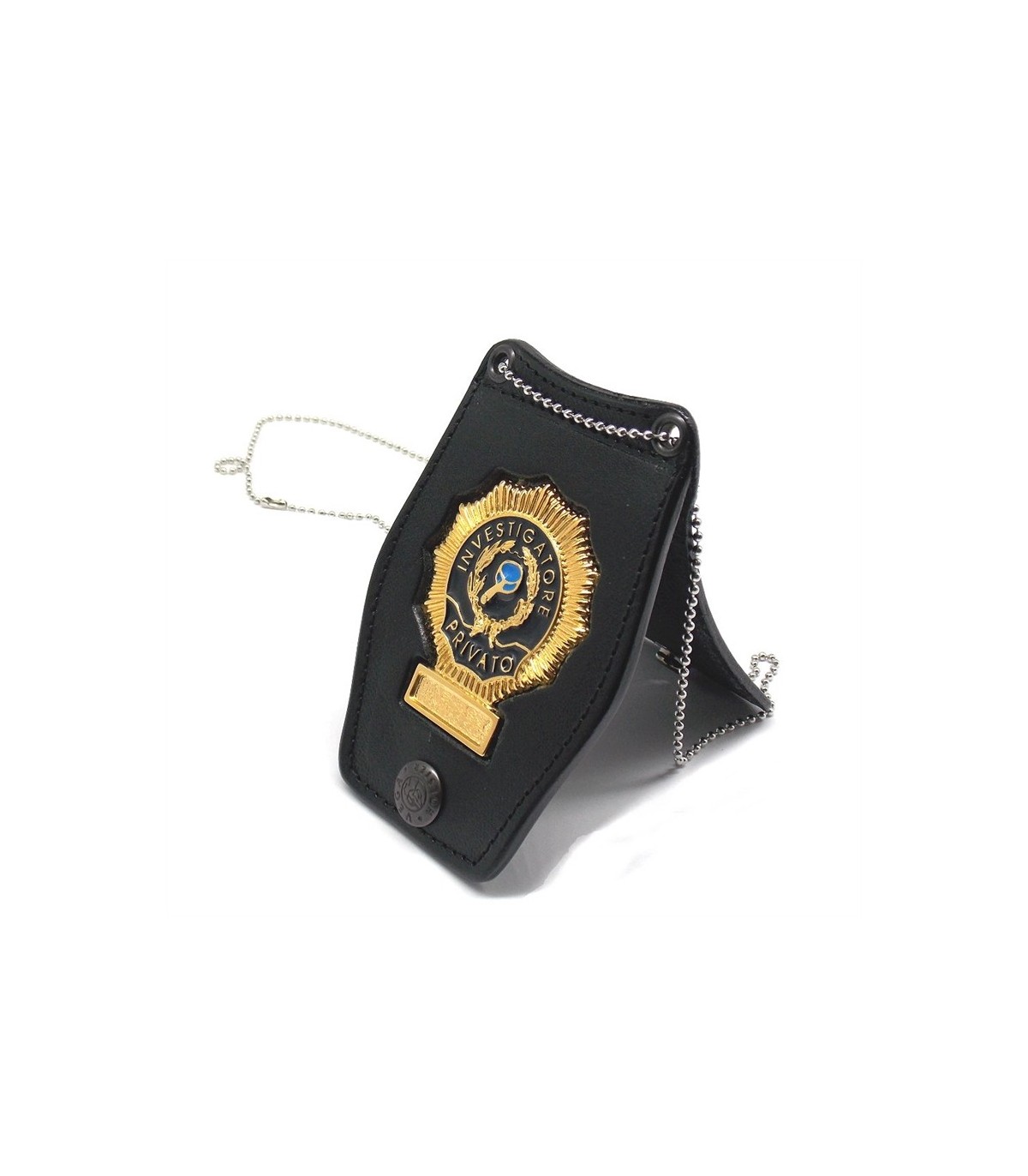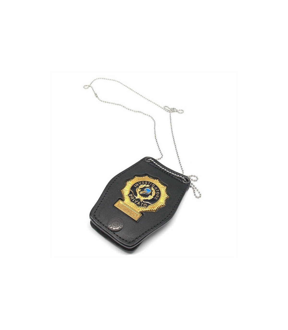 Porta placca in pelle da collo e cintura con placca Investigatore Privato