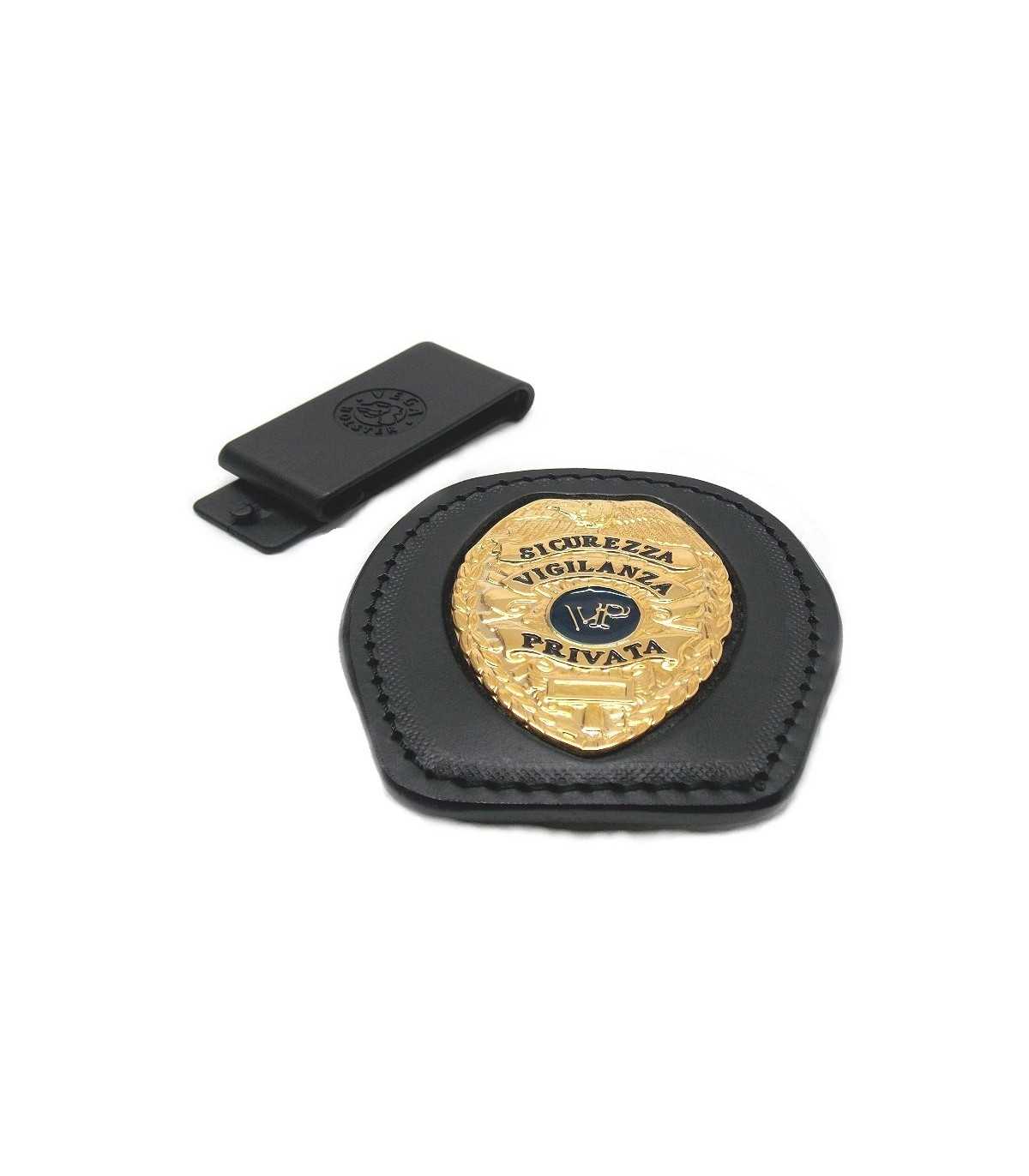 VEGA HOLSTER SICUREZZA VIGILANZA PRIVATA - PRIVATE SECURITY GUARD BADGE HOLDER 1WA48 MADE OF LEATHER, WITH POLYMER SPRING ON THE BACK.