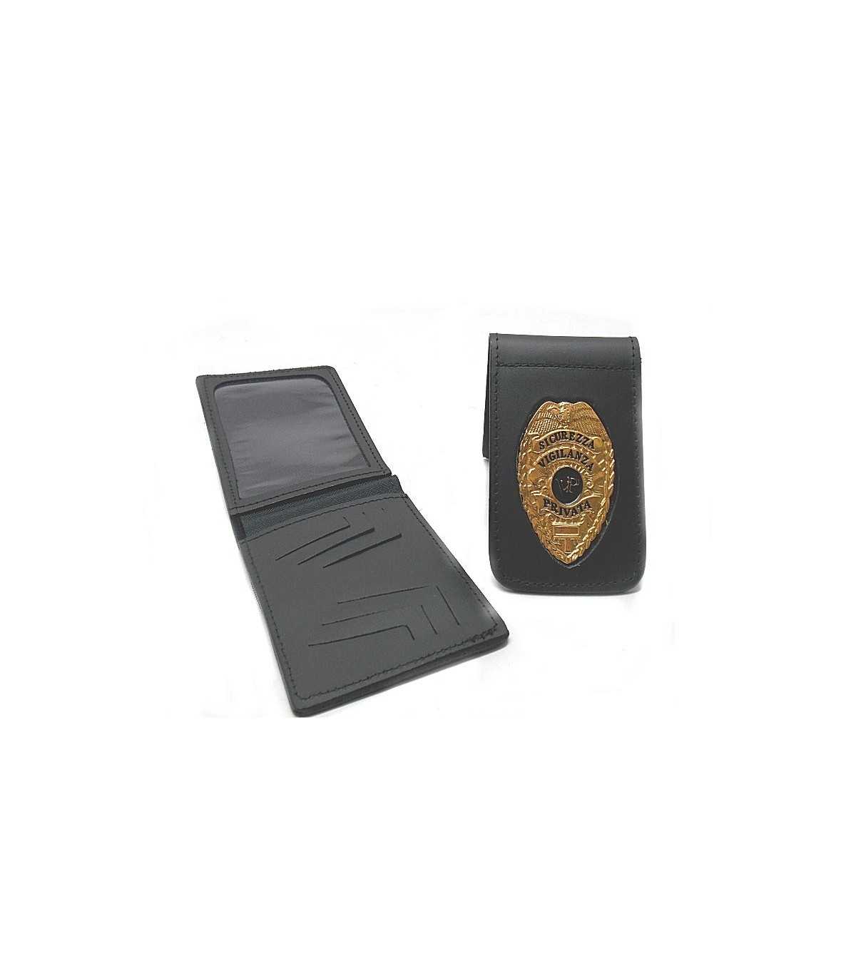 VEGA HOLSTER SICUREZZA VIGILANZA PRIVATA - PRIVATE SECURITY GUARD LEATHER WALLET 1WE48 MADE OF LEATHER, WITH REMOVABLE METAL EMBLEM