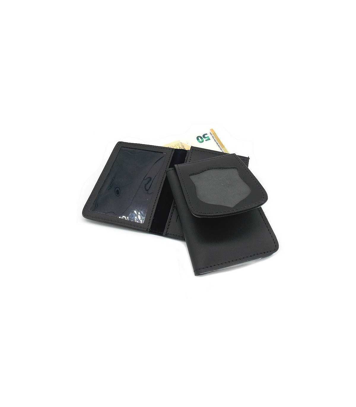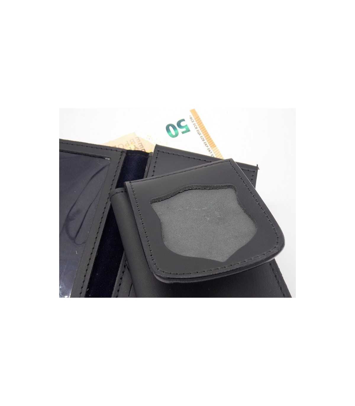 Leather wallet with neutral plaque holder with shield hole (hole: maximum height 7 cm, maximum width 5.5 cm)