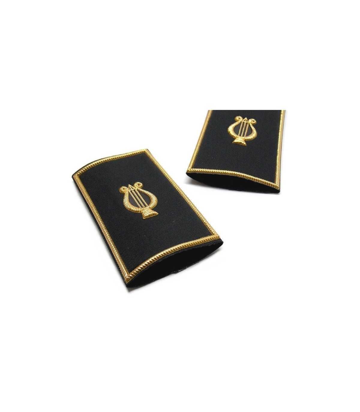 Pair of black tubulars with golden border and gold plasticized zither