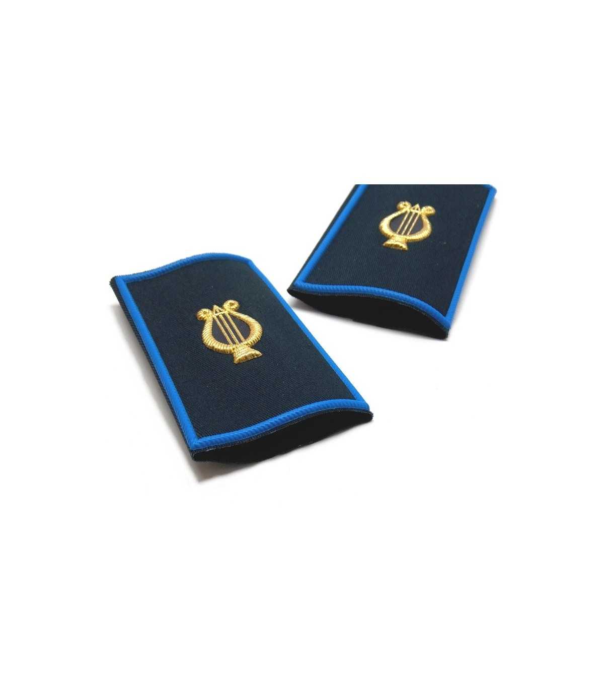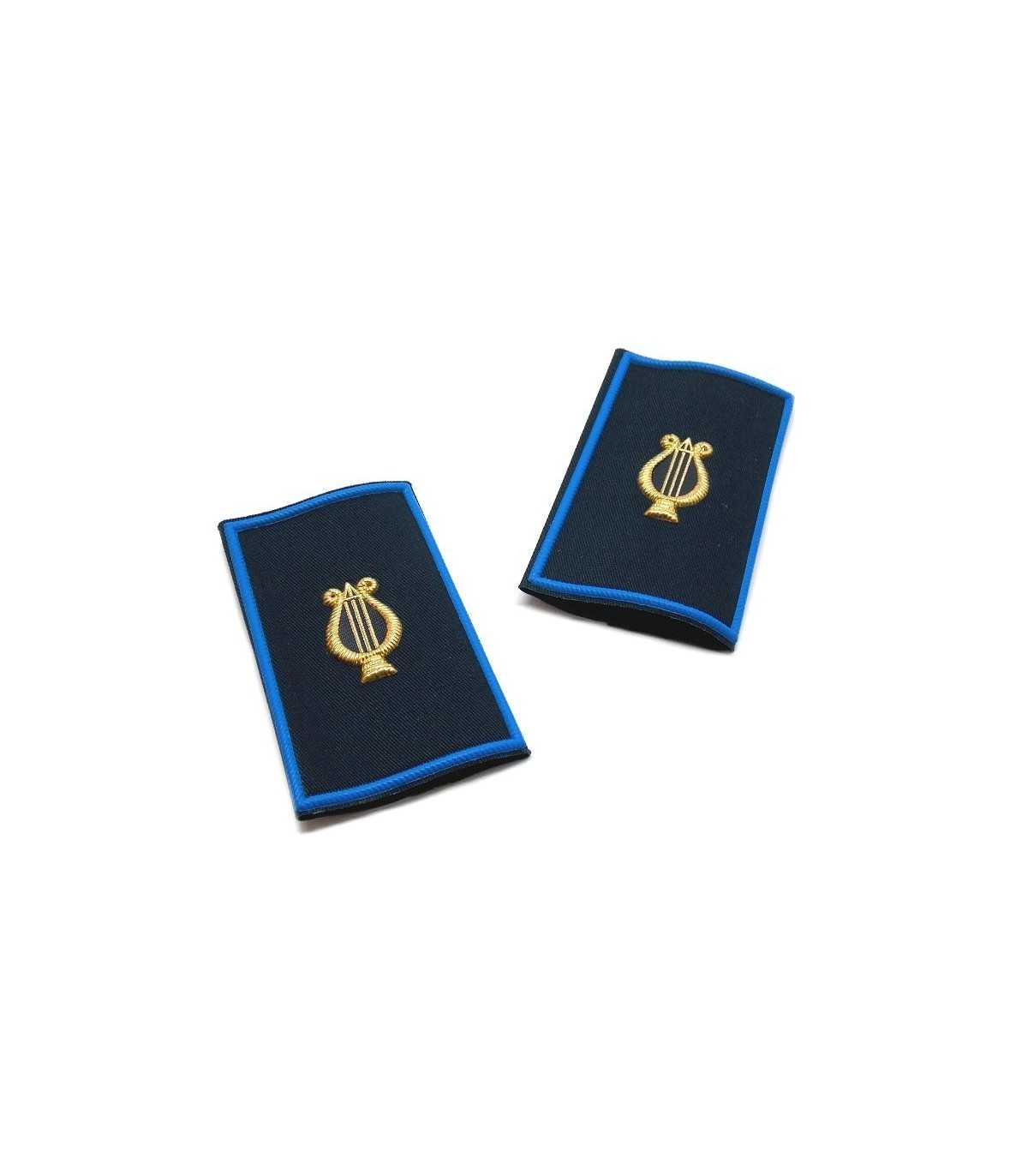 Pair of blue-colored tubulars with light blue border and gold-plated zither