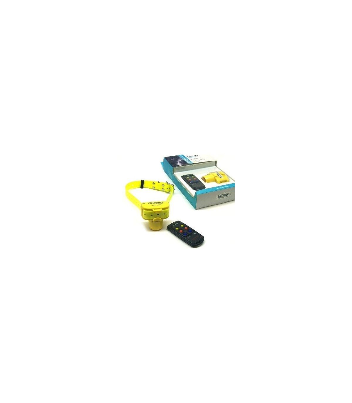 IT HAS THE SAME CHARACTERISTICS OF TRADITIONAL CANIBEEP, BUT IT HAS THE REMOTE CONTROL, TOO. IT OPERATES 1 UP TO 3 CANIBEEP COLLARS. DIMENSIONS: CM 8.6 x 3.8 x 4.8. WEIGHT: GR 78. BATTERIES INCLUDED. BATTERY LIFE: 100 HOURS. AUDIBLE UP TO 250 METERS. PLASTIC CANVAS WASHABLE ADJUSTABLE STRAP. COLOUR: YELLOW. MADE IN FRANCE.