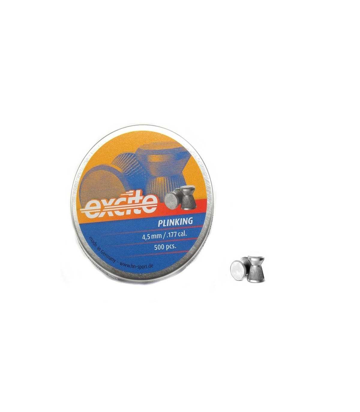 Lead shot with flat tip and knurled funnel, caliber 4.5 for compressed air rifle>br>500 pieces pack>br>Made in Germany.