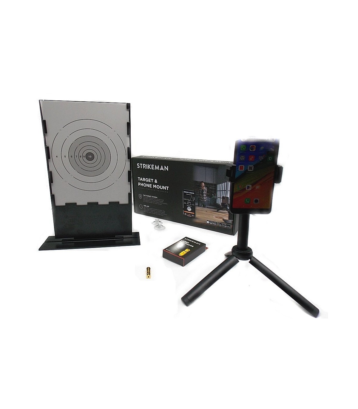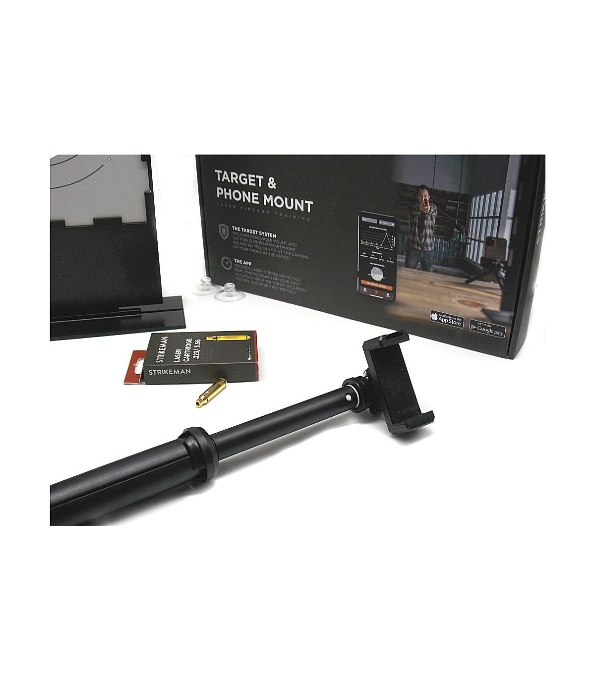 Il bersaglio Strikeman è composto da un bersaglio in plastica, un supporto in plastica per cellulare, da una cartuccia laser calibro .223/5.56 in metallo e da un manuale in italiano per l'utilizzo